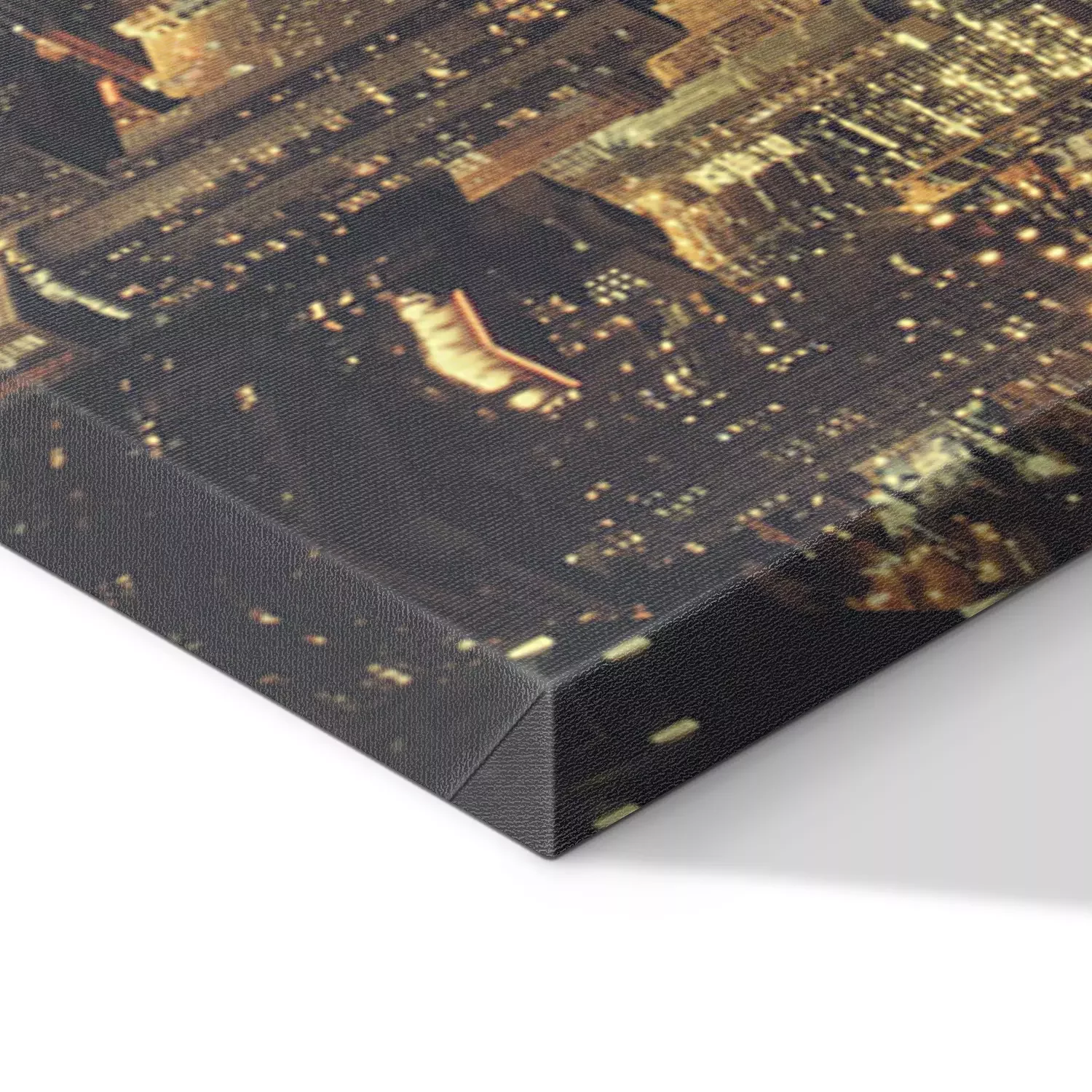 De print wordt aangebracht op hoogwaardig canvas dat op een schildersweefgetouw (spieraam) wordt gespannen. Omdat de print de zijranden bedekt, hoeft het ontwerp niet met een extra kader te worden omlijst. Wij raden ook composities aan die uit meerdere foto's bestaan en zo een coherente compositie vormen.