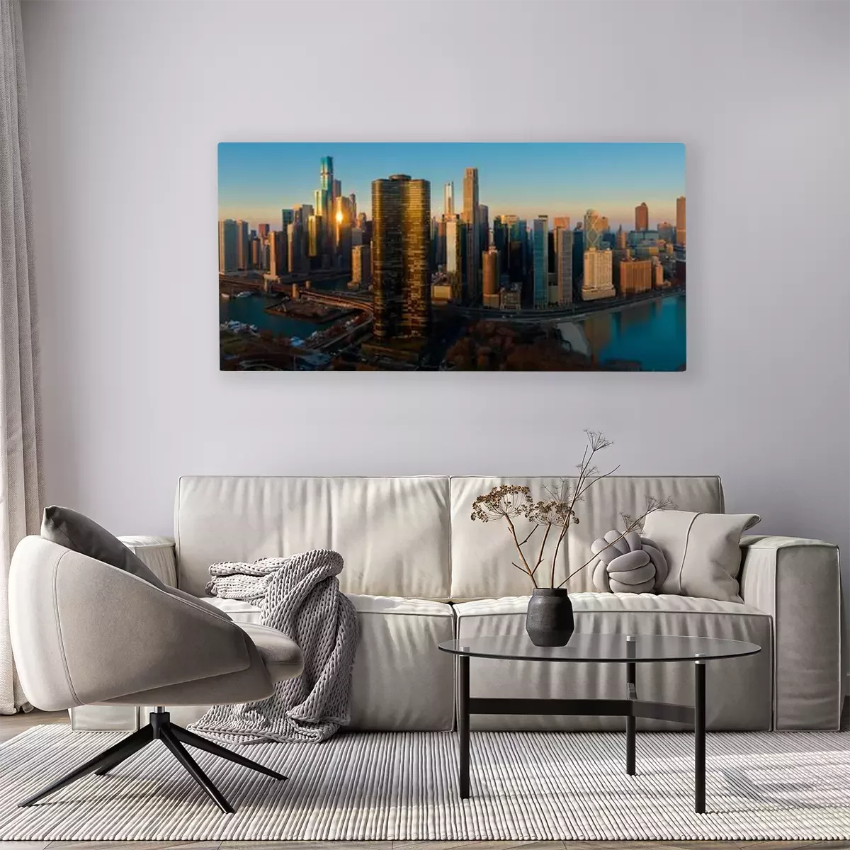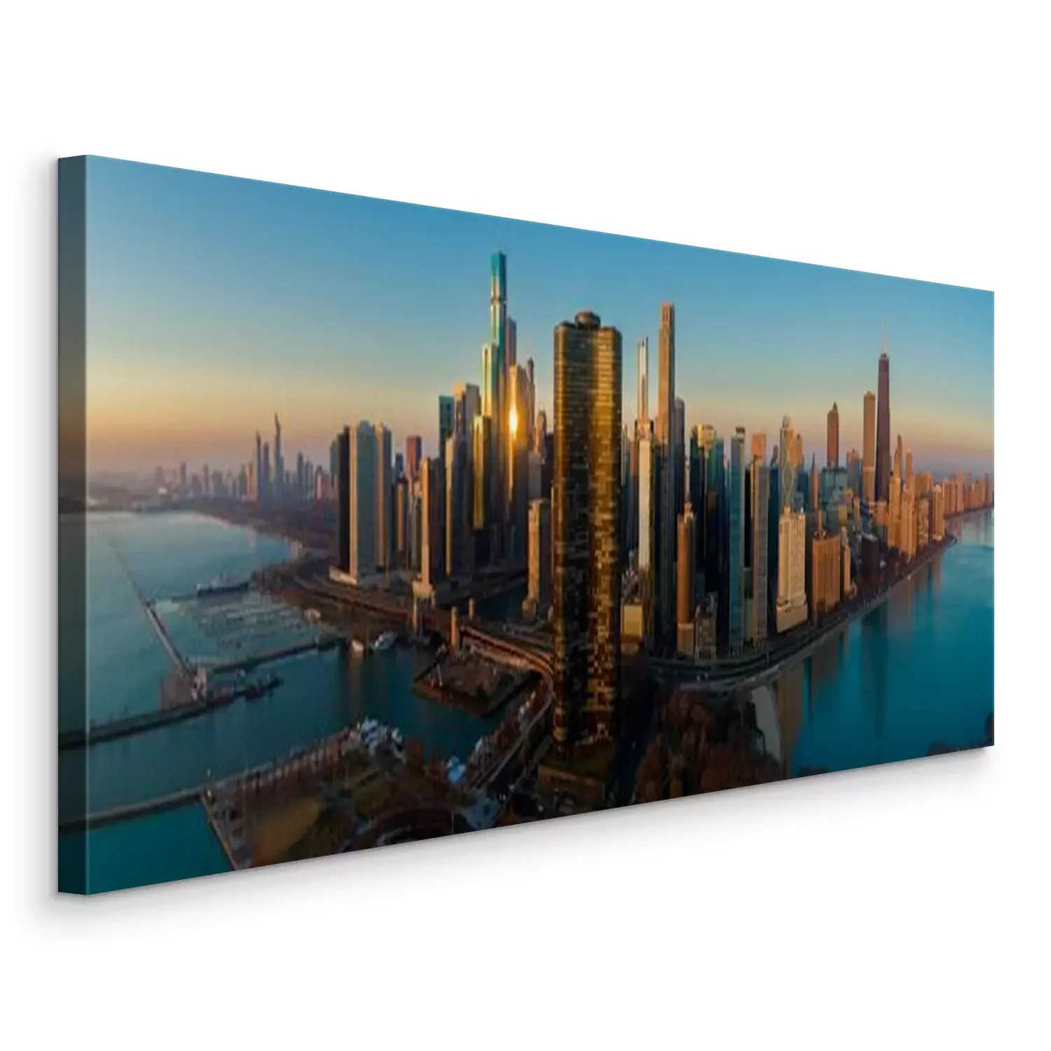 Canvas Chicago Skyline Lake Shore Panorama Sunrise Aerial 9