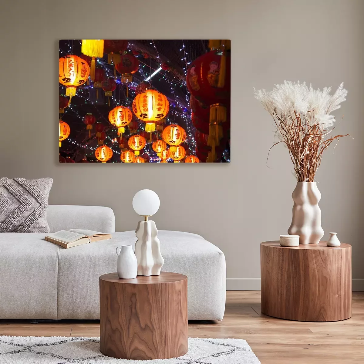 Canvas Chinese lantaarns 's nachts, Chinees Nieuwjaar decoraties (tekst betekent veel geluk)