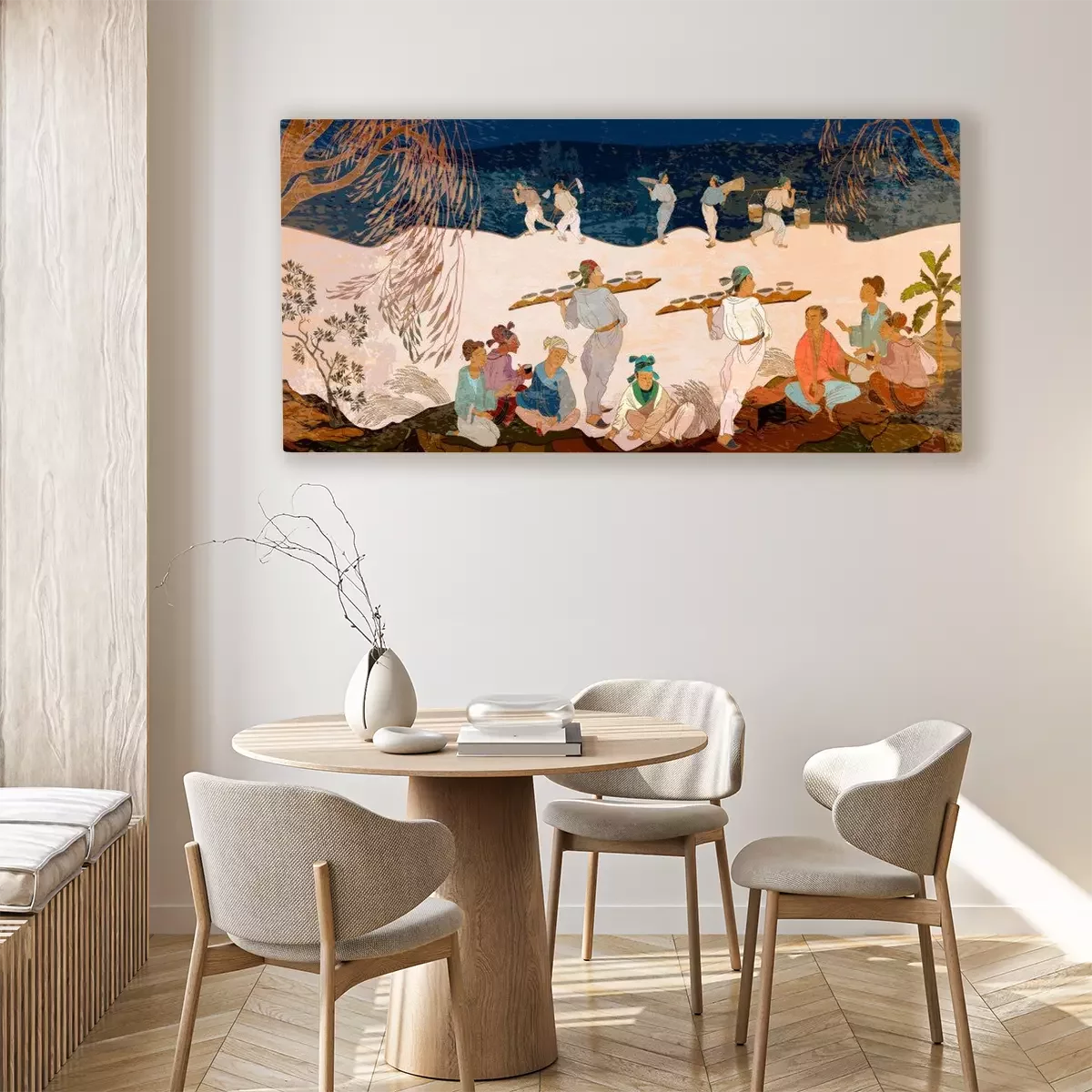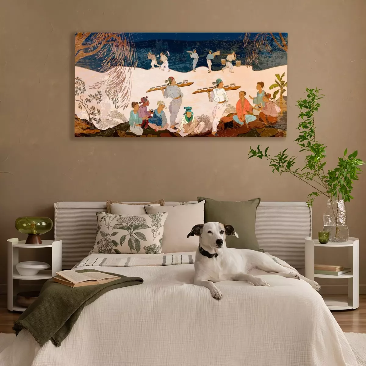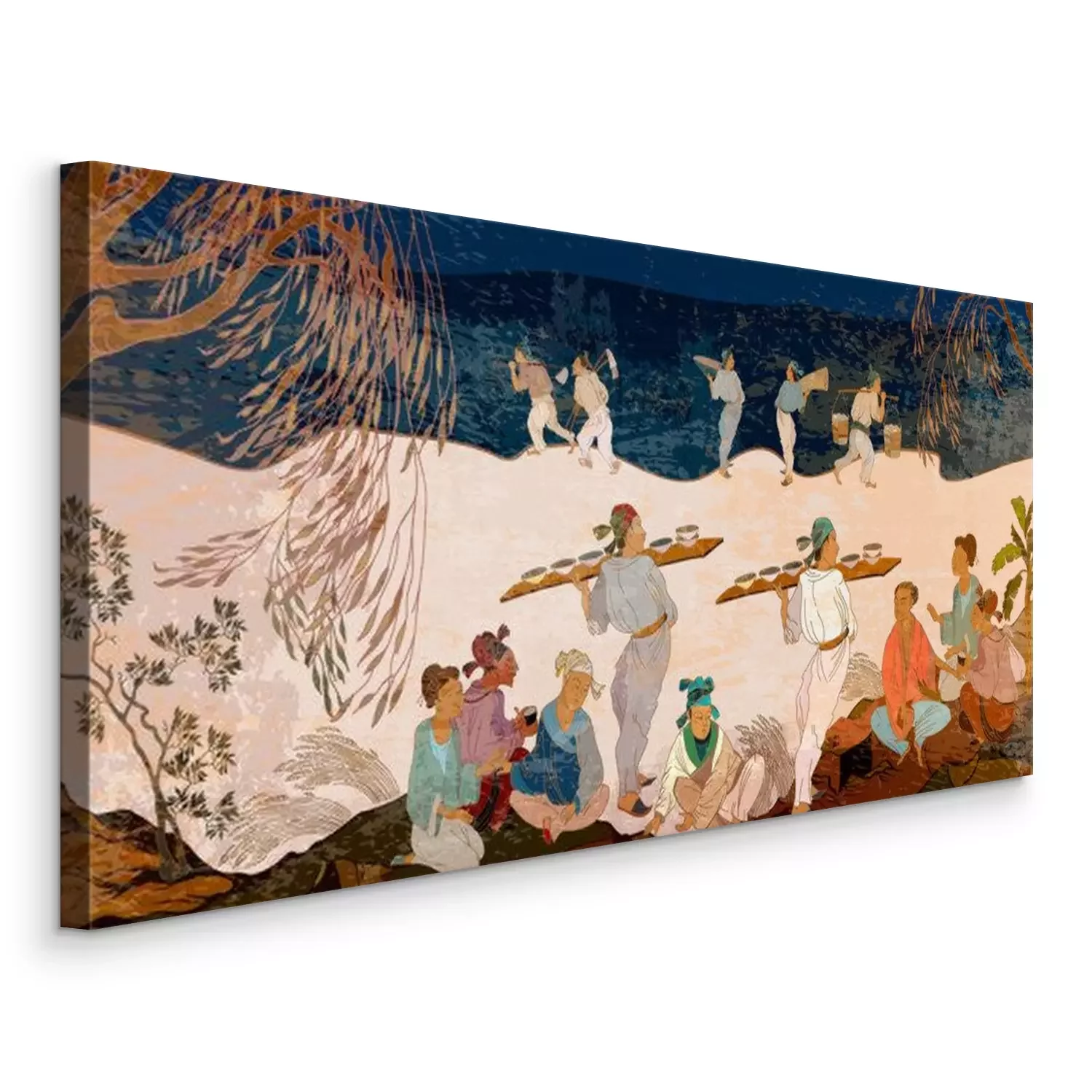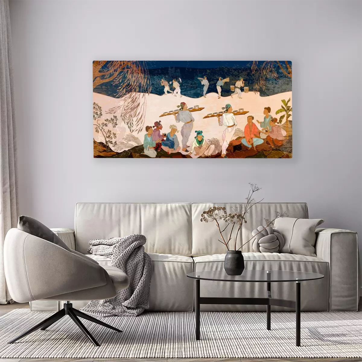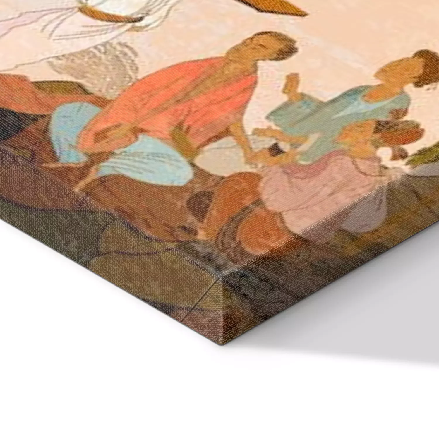 De print wordt aangebracht op hoogwaardig canvas dat op een schildersweefgetouw (spieraam) wordt gespannen. Omdat de print de zijranden bedekt, hoeft het ontwerp niet met een extra kader te worden omlijst. Wij raden ook composities aan die uit meerdere foto's bestaan en zo een coherente compositie vormen.