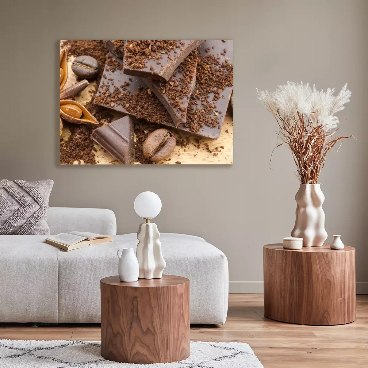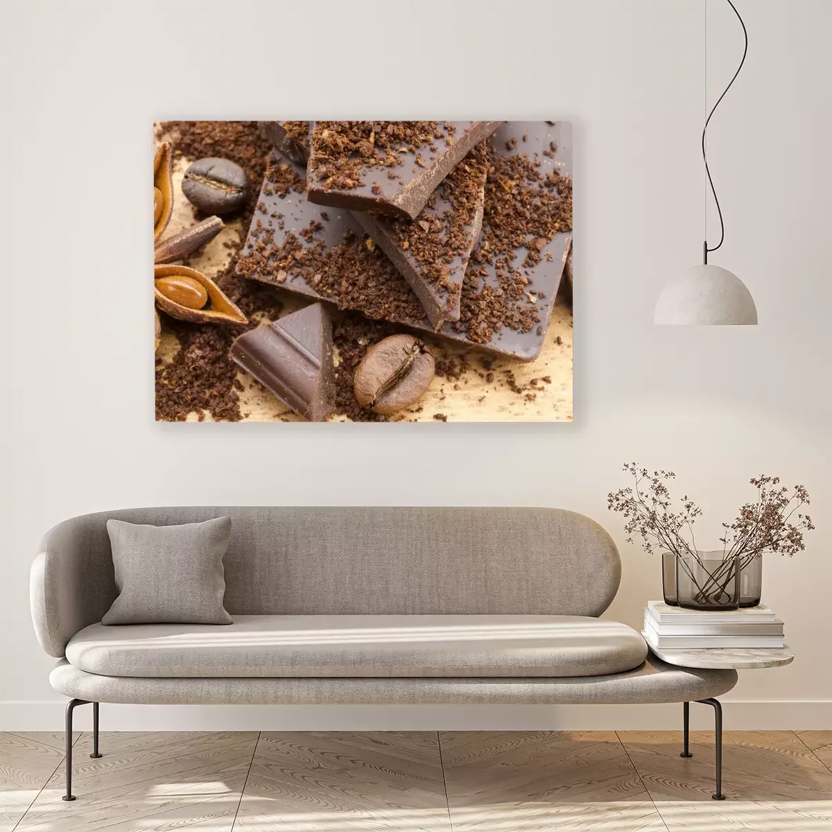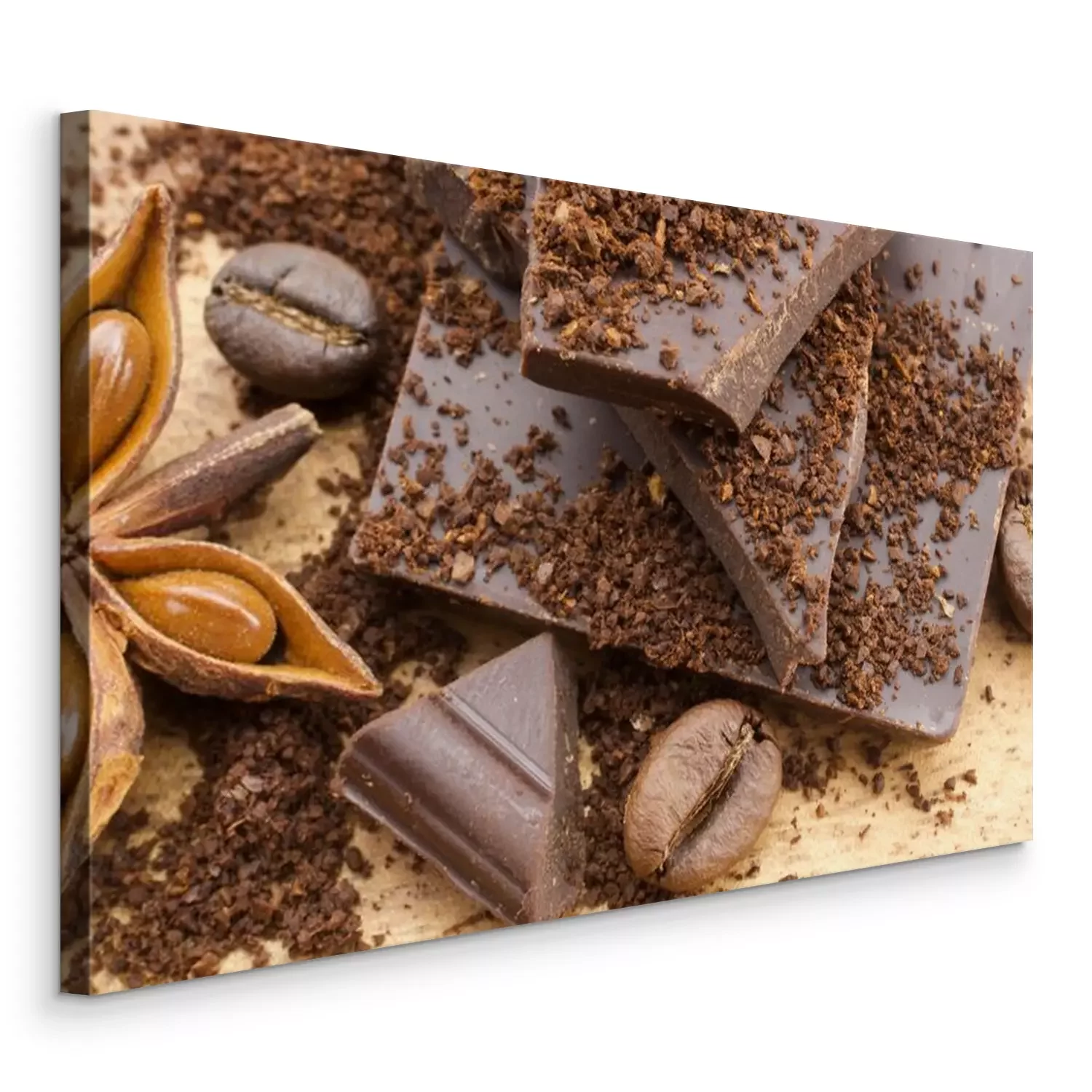 Canvas: Chocolade en koffie bonen op houten achtergrond