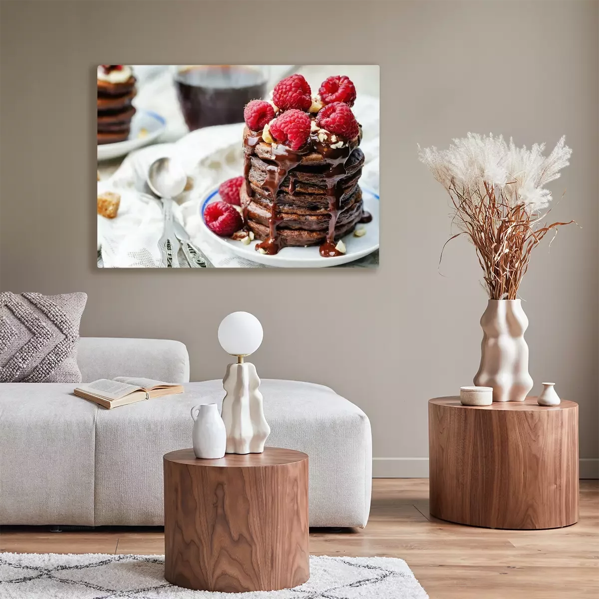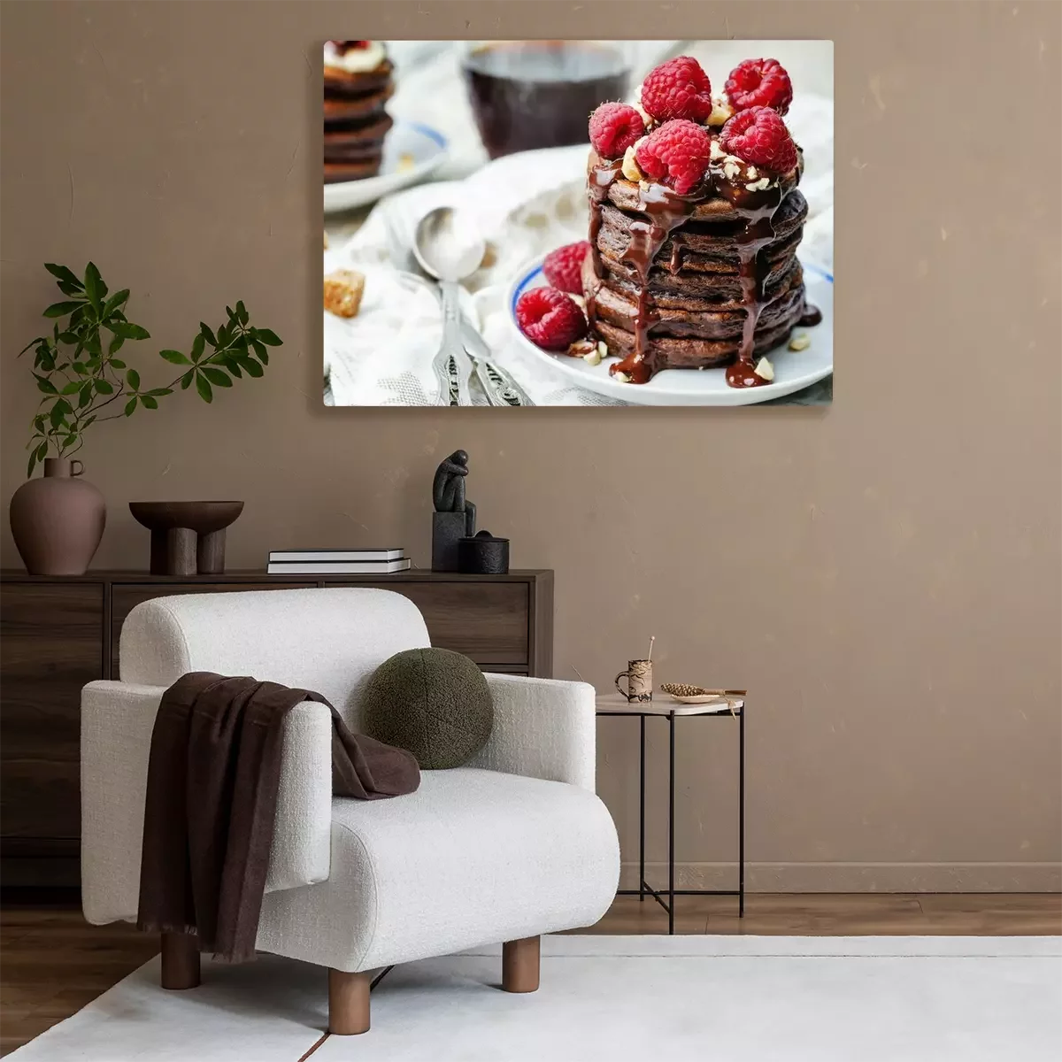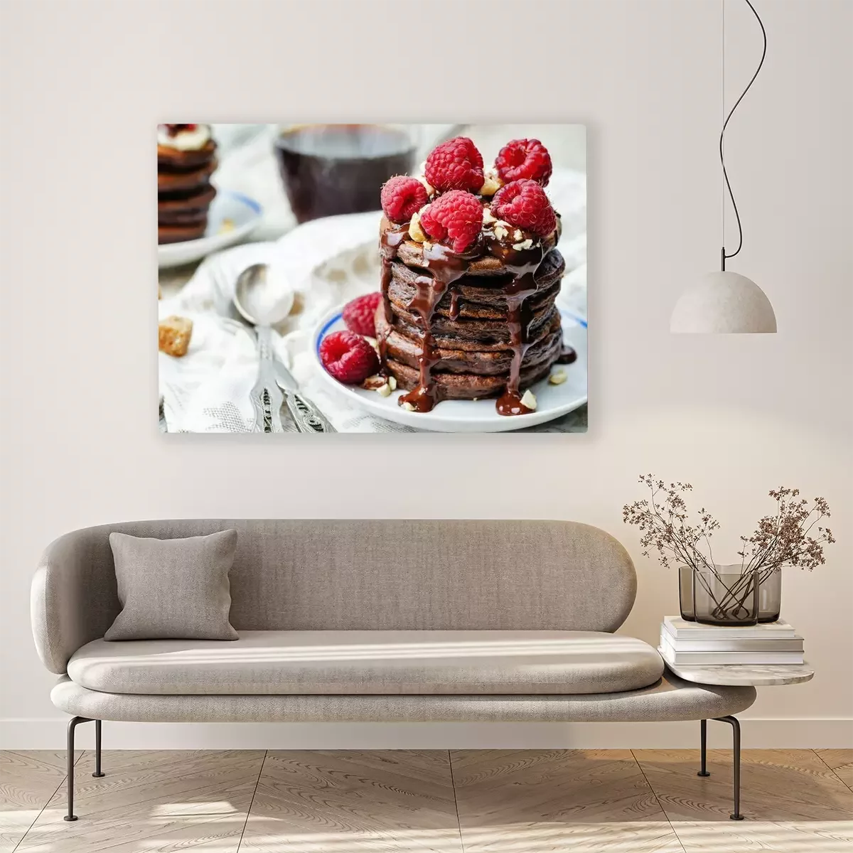 Canvas Chocolade pannenkoek met bananen, frambozen, noten en chocolade