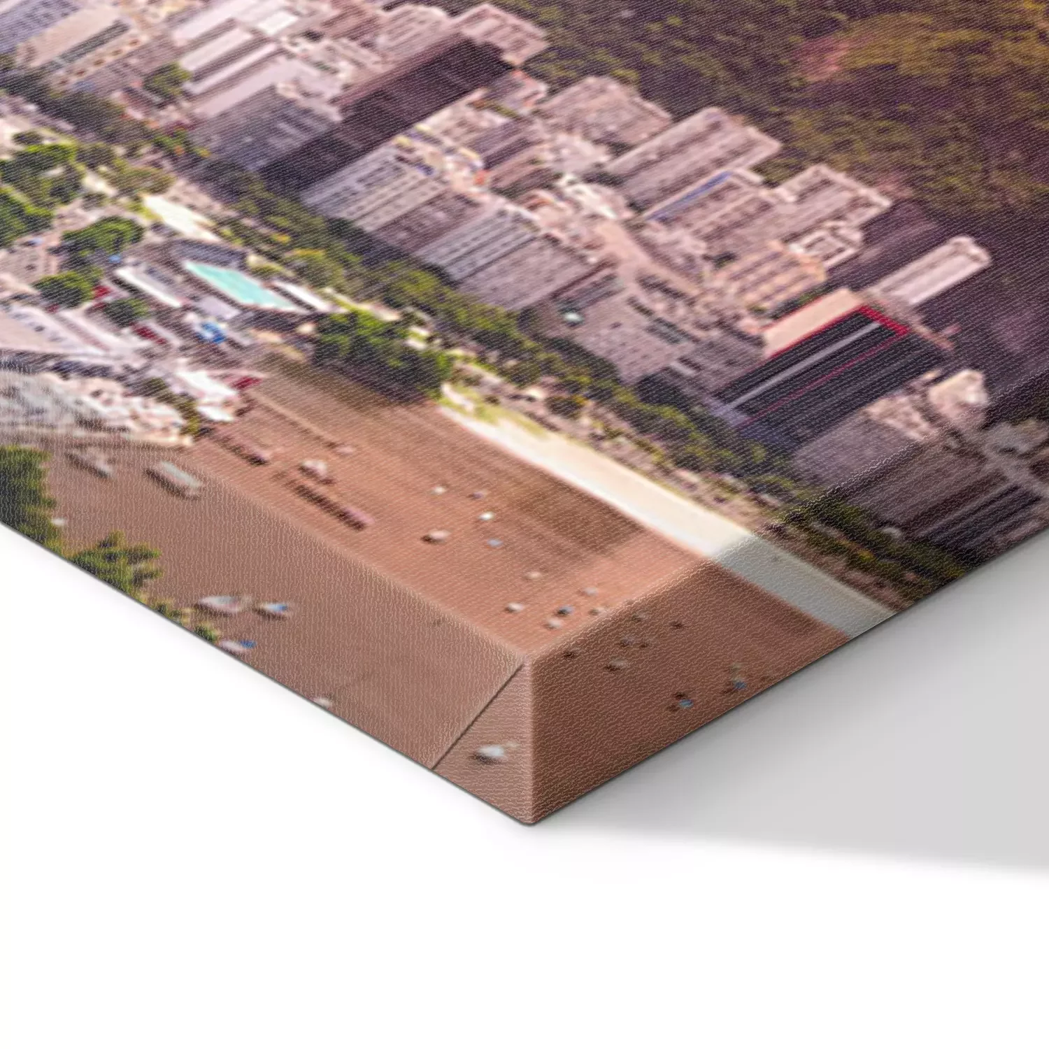 De print wordt aangebracht op hoogwaardig canvas dat op een schildersweefgetouw (spieraam) wordt gespannen. Omdat de print de zijranden bedekt, hoeft het ontwerp niet met een extra kader te worden omlijst. Wij raden ook composities aan die uit meerdere foto's bestaan en zo een coherente compositie vormen.