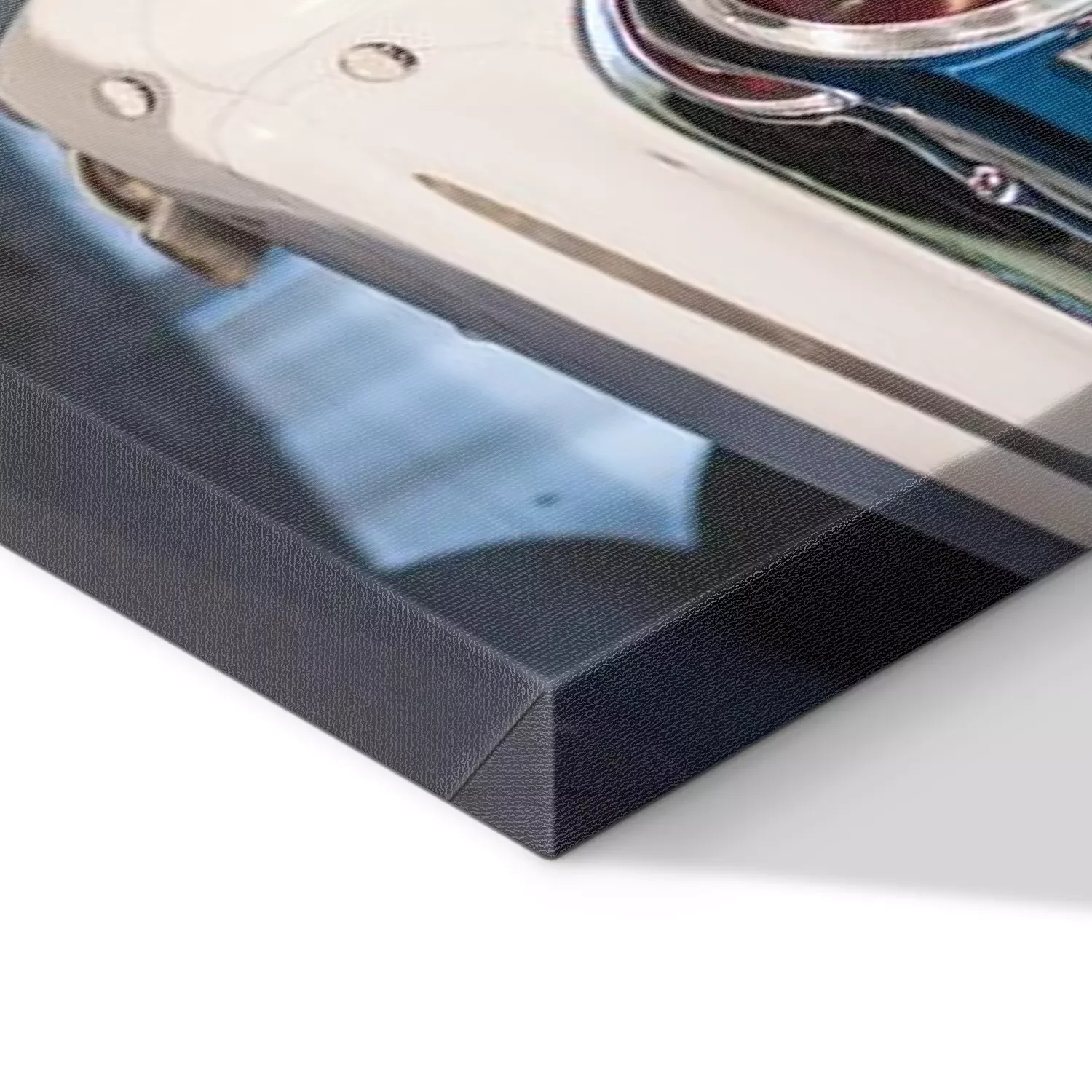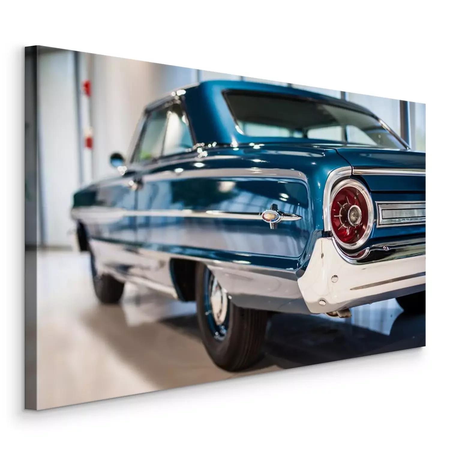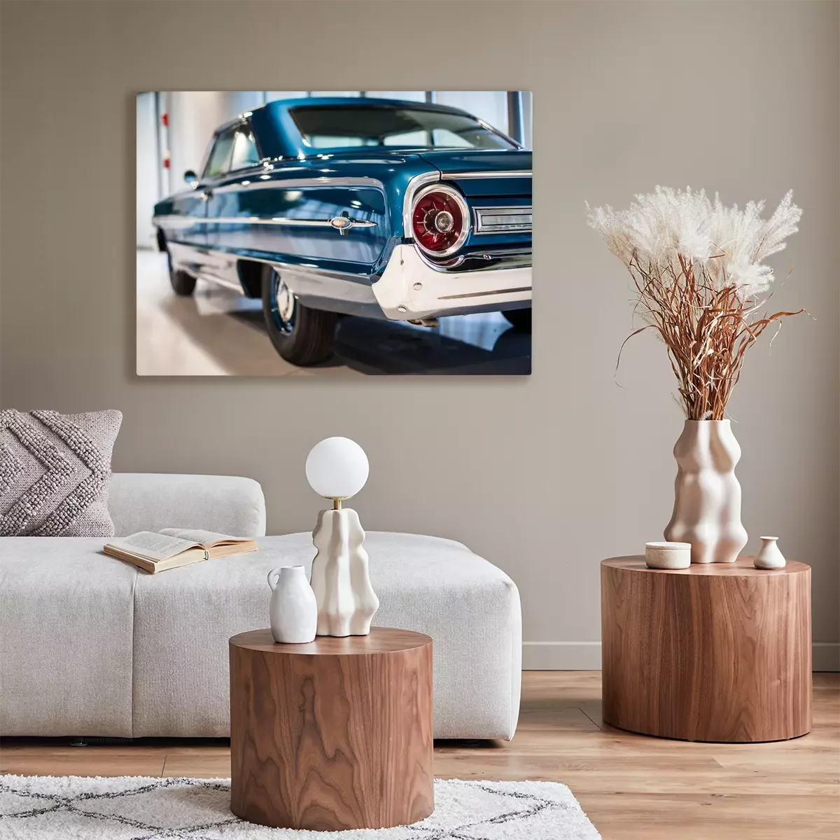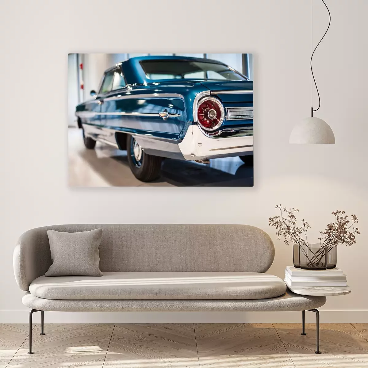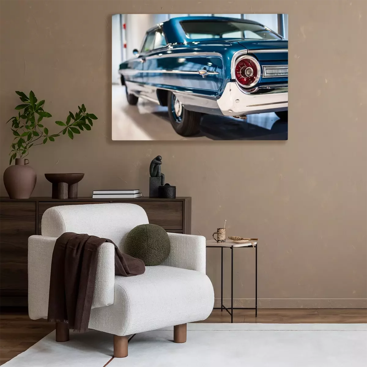 Canvas: Chromen achterlichten, bumper en uitlaat van converteerbare turquoise vintage auto