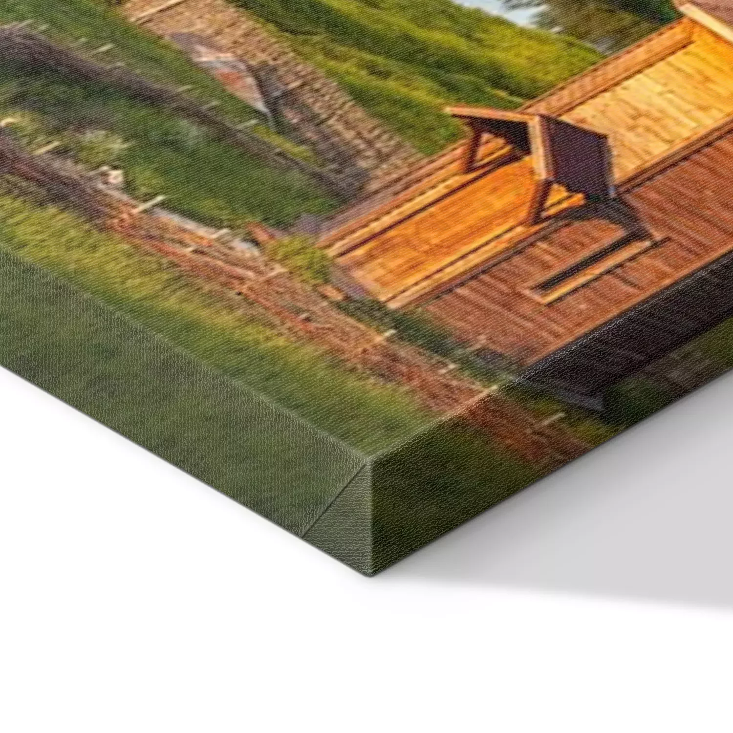 De print wordt aangebracht op hoogwaardig canvas dat op een schildersweefgetouw (spieraam) wordt gespannen. Omdat de print de zijranden bedekt, hoeft het ontwerp niet met een extra kader te worden omlijst. Wij raden ook composities aan die uit meerdere foto's bestaan en zo een coherente compositie vormen.
