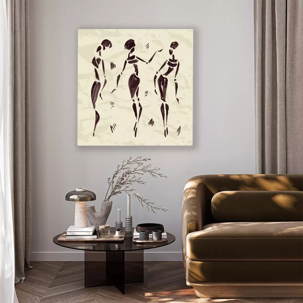 Canvas: Cijfers van Afrikaanse dansers. Hand getrokken illustratie.