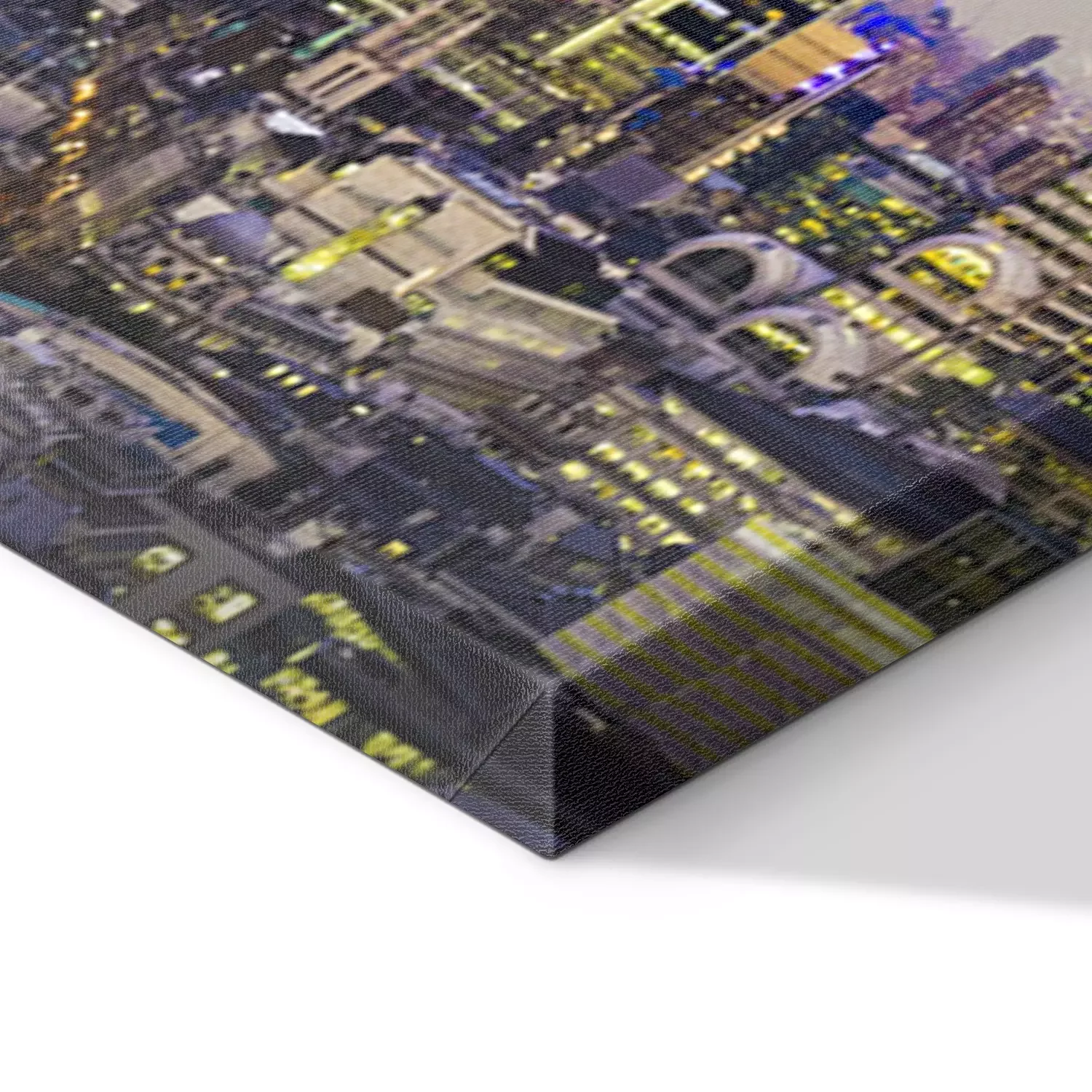 De print wordt aangebracht op hoogwaardig canvas dat op een schildersweefgetouw (spieraam) wordt gespannen. Omdat de print de zijranden bedekt, hoeft het ontwerp niet met een extra kader te worden omlijst. Wij raden ook composities aan die uit meerdere foto's bestaan en zo een coherente compositie vormen.