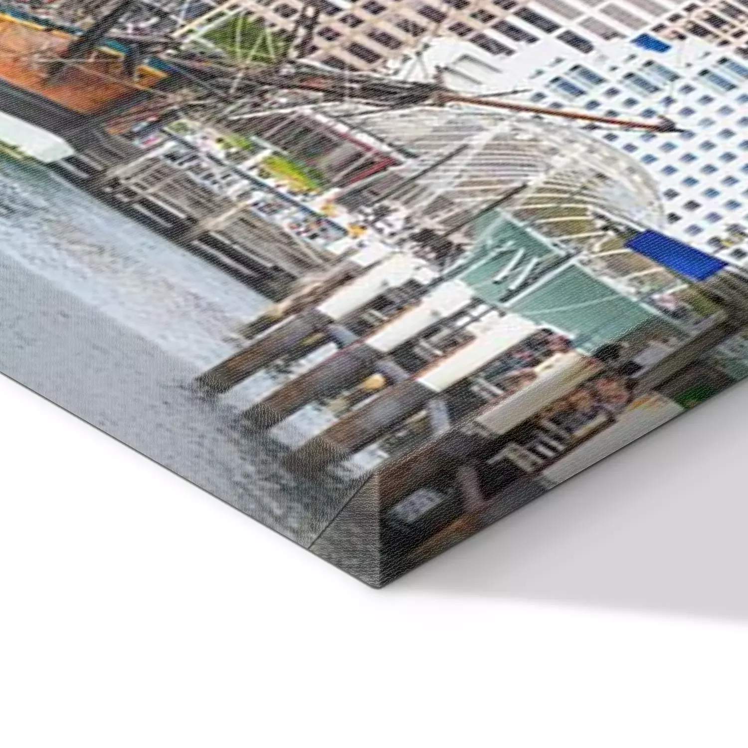 De print wordt aangebracht op hoogwaardig canvas dat op een schildersweefgetouw (spieraam) wordt gespannen. Omdat de print de zijranden bedekt, hoeft het ontwerp niet met een extra kader te worden omlijst. Wij raden ook composities aan die uit meerdere foto's bestaan en zo een coherente compositie vormen.