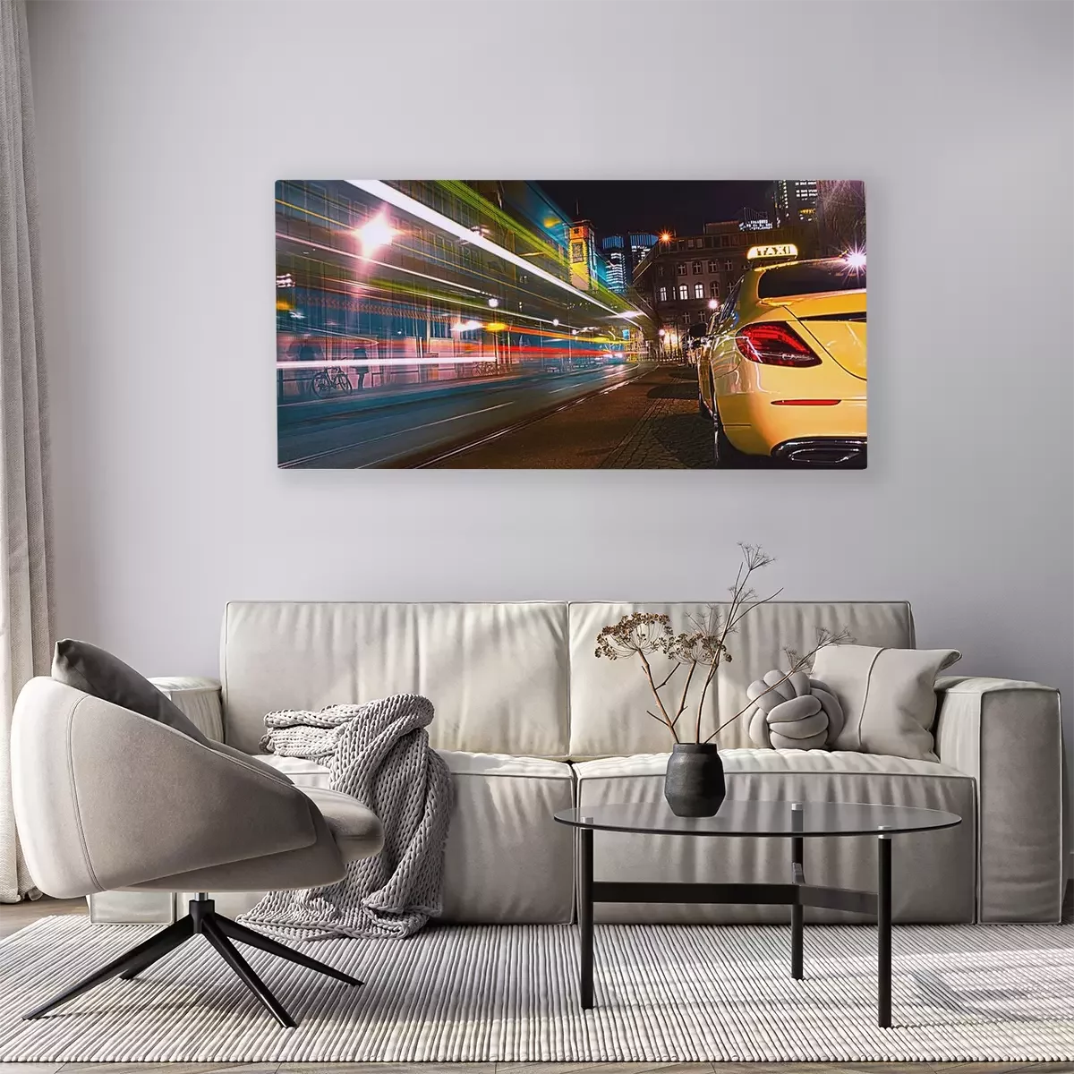 De print wordt aangebracht op hoogwaardig canvas dat op een schildersweefgetouw (spieraam) wordt gespannen. Omdat de print de zijranden bedekt, hoeft het ontwerp niet met een extra kader te worden omlijst. Wij raden ook composities aan die uit meerdere foto's bestaan en zo een coherente compositie vormen.