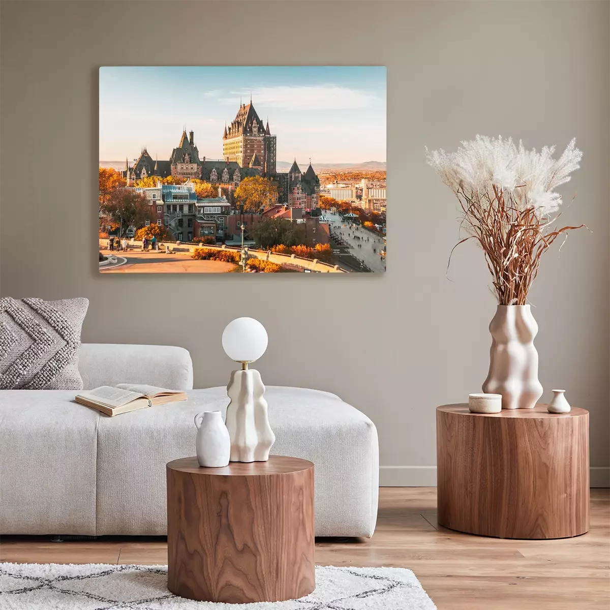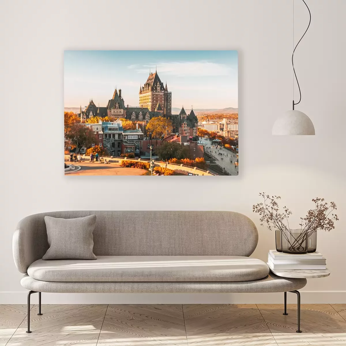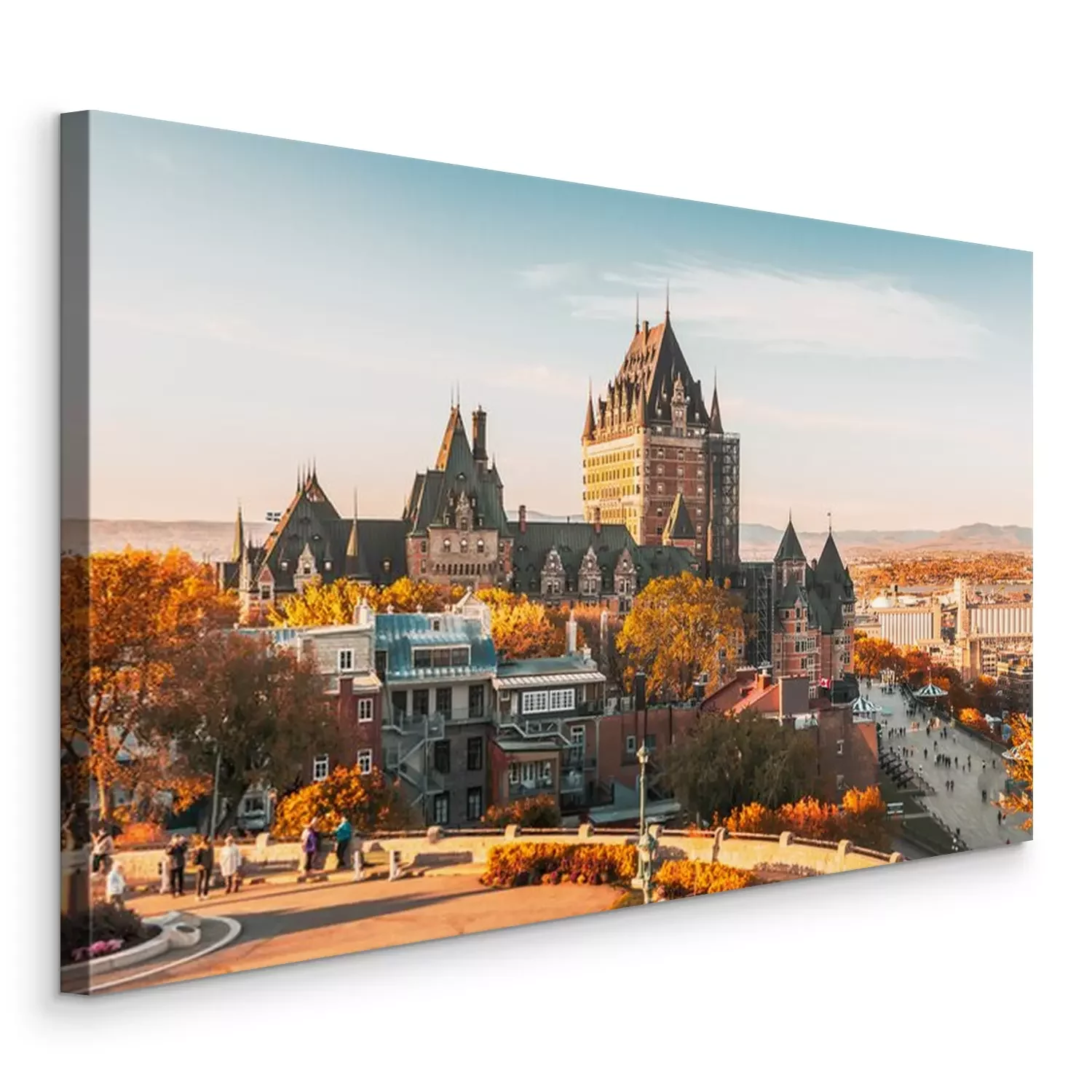 Canvas: Cityscape or skyline of Chateau Frontenac, Dufferin Terrace and Saint Lawrence river at overlook in old town