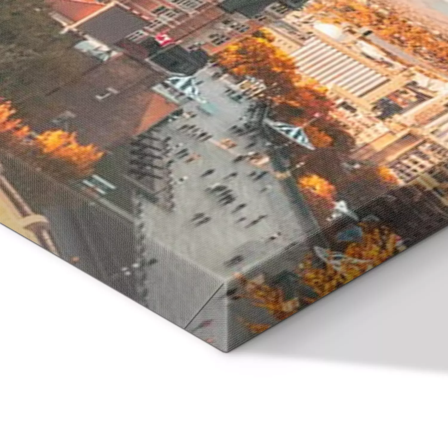 De print wordt aangebracht op hoogwaardig canvas dat op een schildersweefgetouw (spieraam) wordt gespannen. Omdat de print de zijranden bedekt, hoeft het ontwerp niet met een extra kader te worden omlijst. Wij raden ook composities aan die uit meerdere foto's bestaan en zo een coherente compositie vormen.