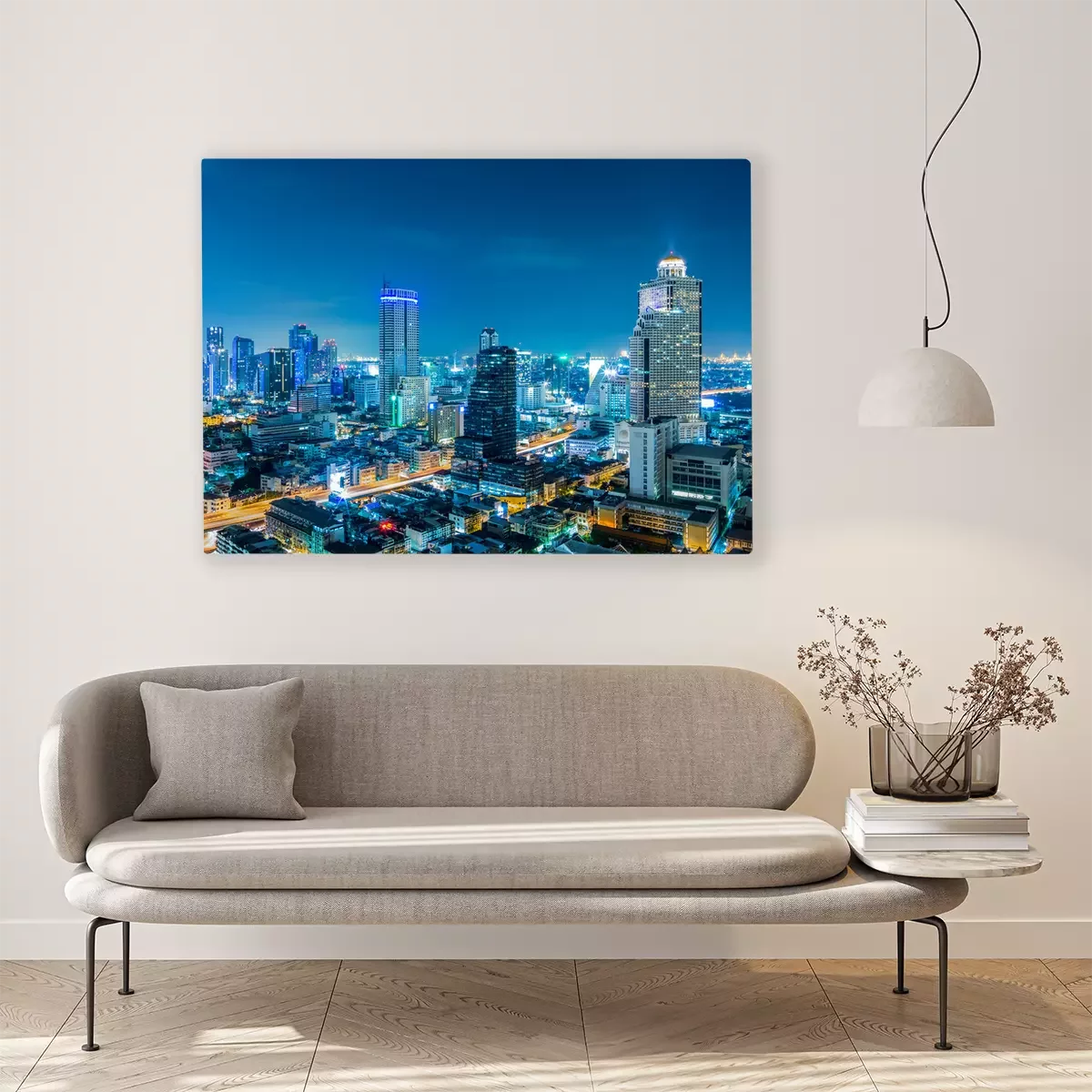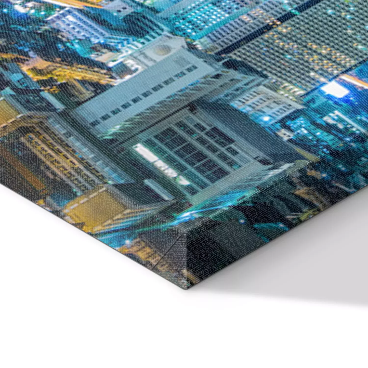 De print wordt aangebracht op hoogwaardig canvas dat op een schildersweefgetouw (spieraam) wordt gespannen. Omdat de print de zijranden bedekt, hoeft het ontwerp niet met een extra kader te worden omlijst. Wij raden ook composities aan die uit meerdere foto's bestaan en zo een coherente compositie vormen.