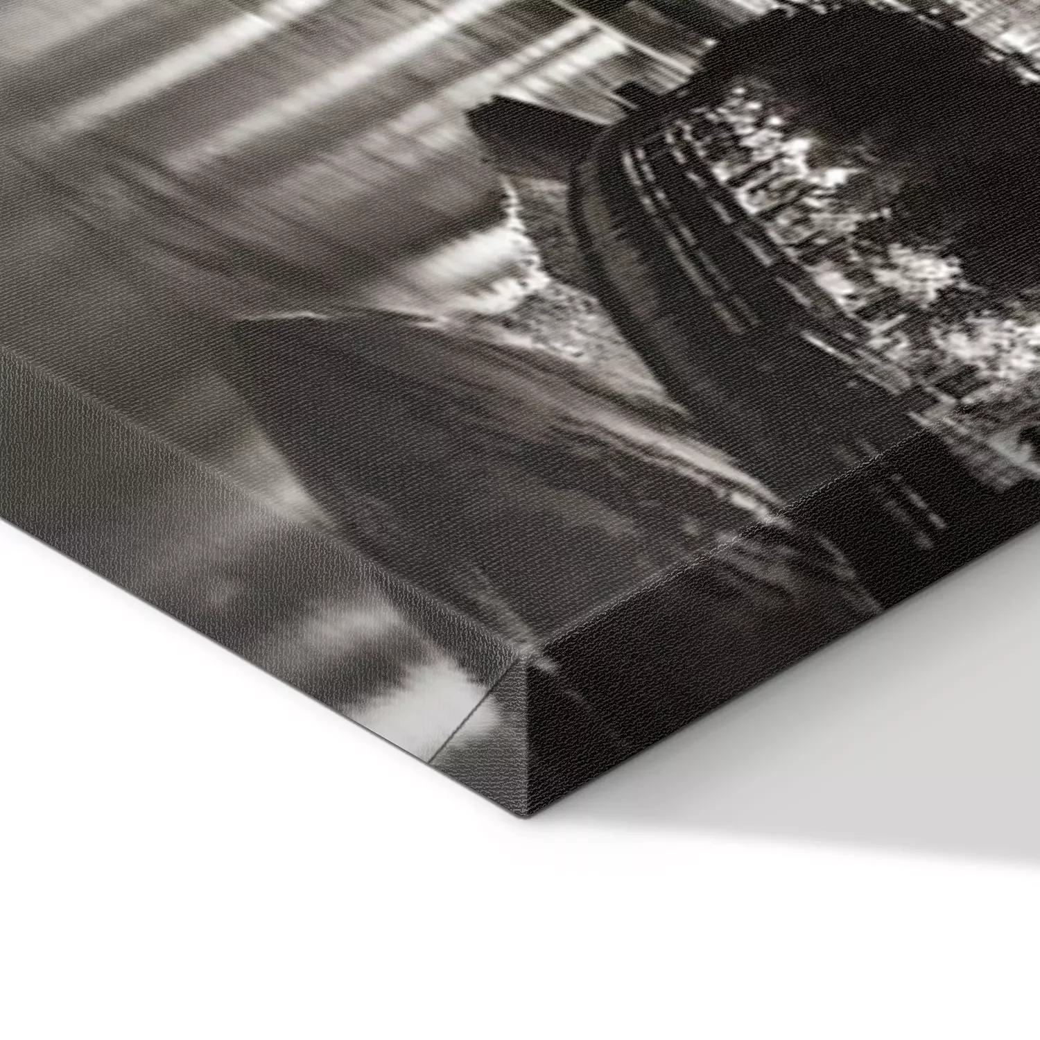 De print wordt aangebracht op hoogwaardig canvas dat op een schildersweefgetouw (spieraam) wordt gespannen. Omdat de print de zijranden bedekt, hoeft het ontwerp niet met een extra kader te worden omlijst. Wij raden ook composities aan die uit meerdere foto's bestaan en zo een coherente compositie vormen.