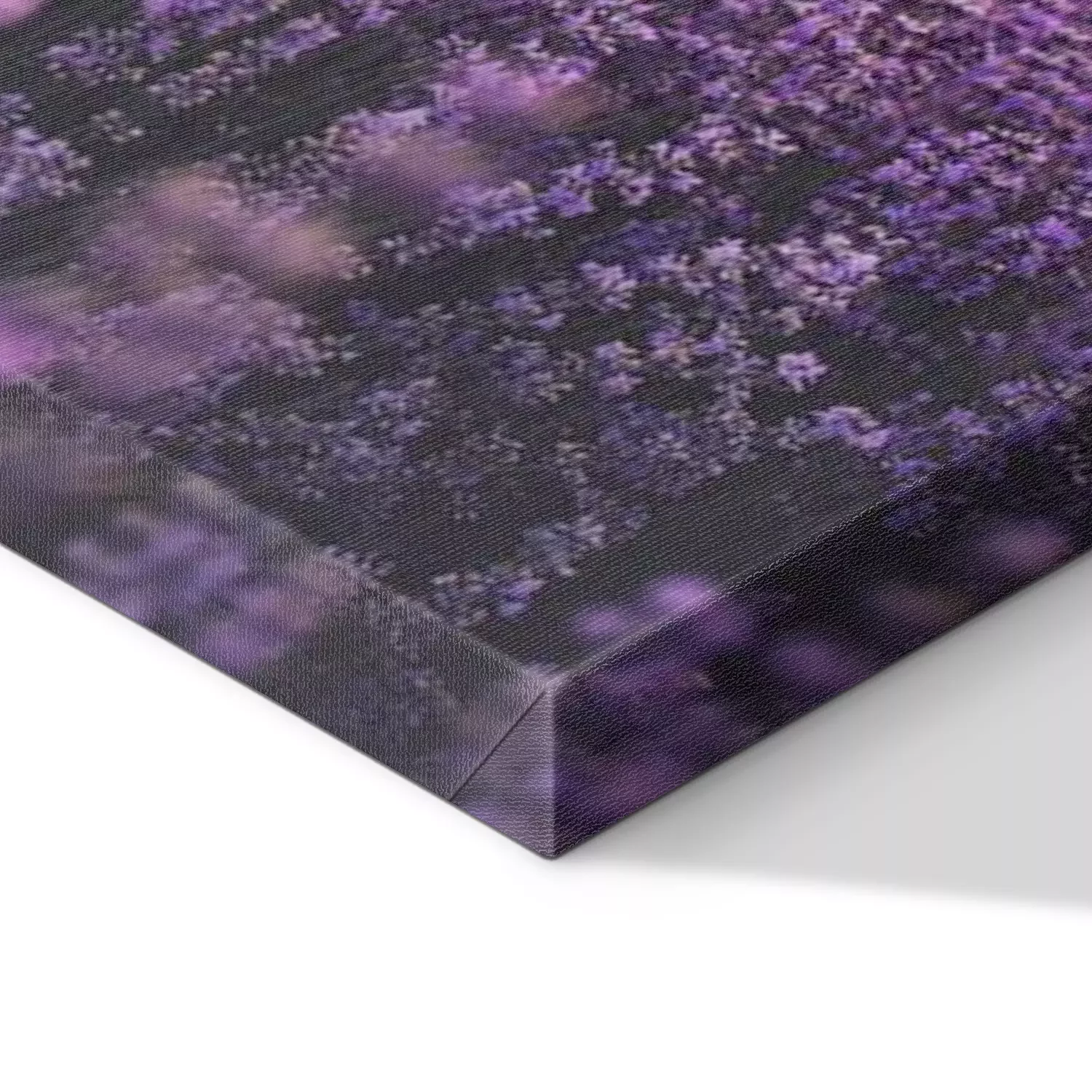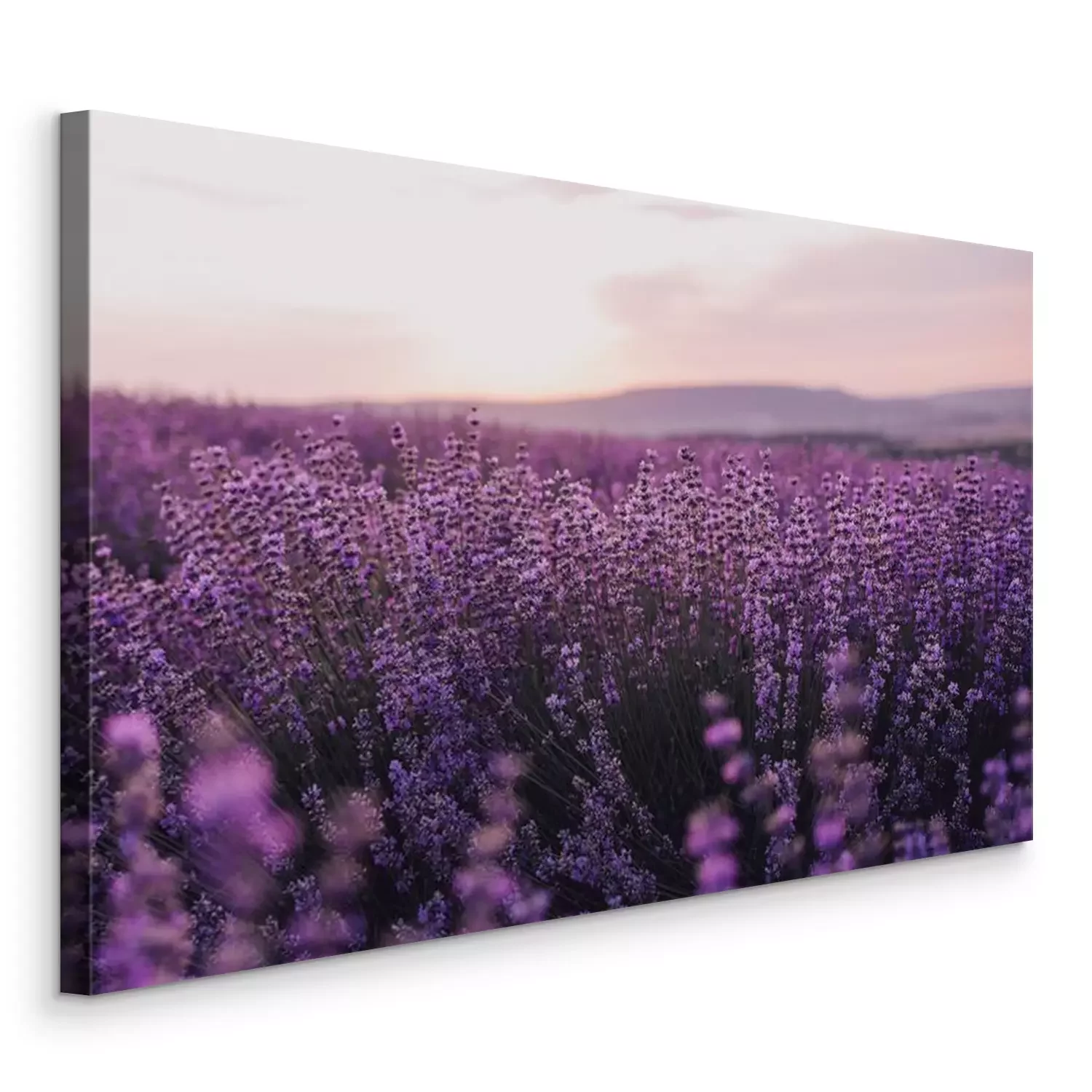 Canvas: Close up lavender flowers in beautiful field at sunset.