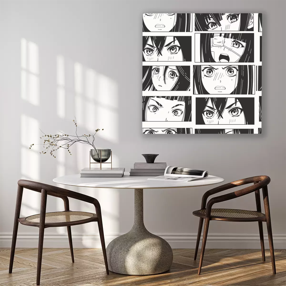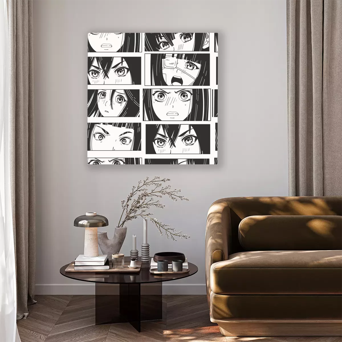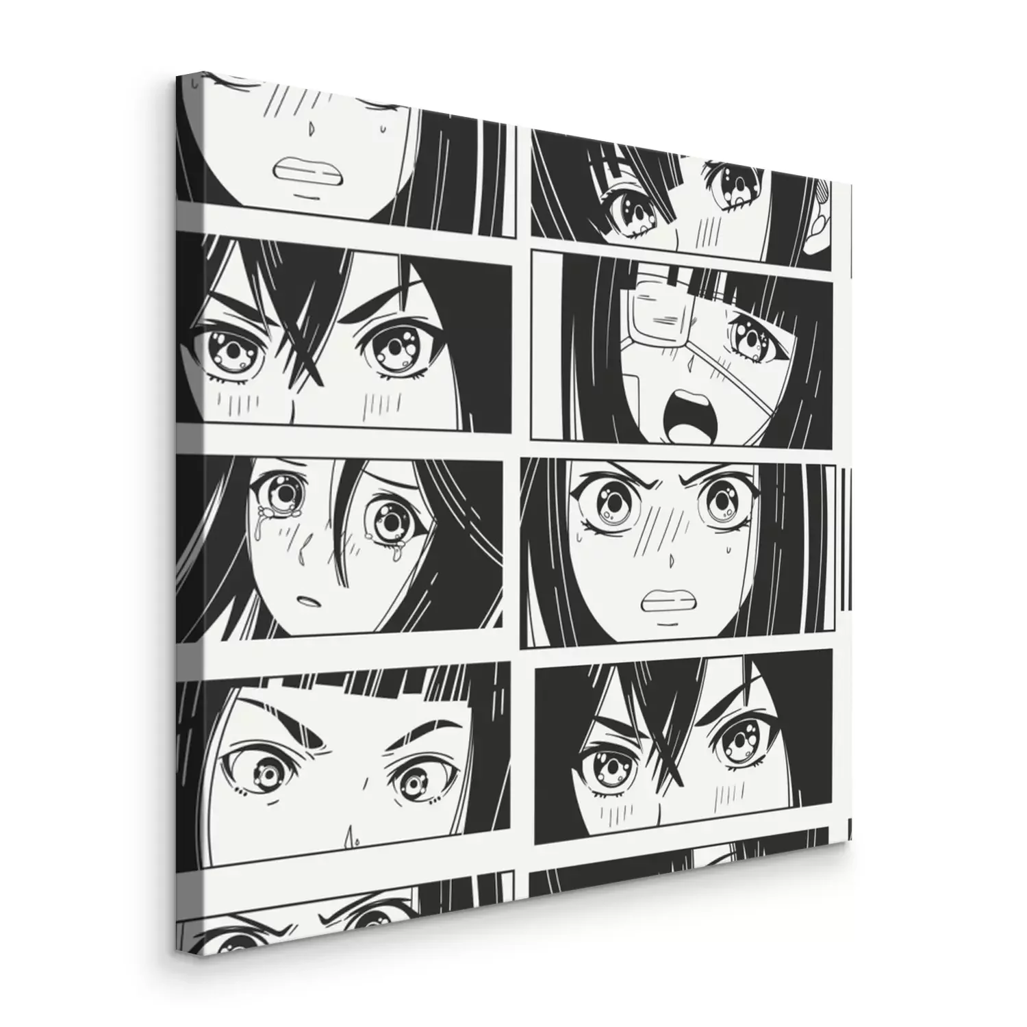 Canvas Close up of Asian female Eyes look. Black and white Manga style. Japanese cartoon Comic concept. Anime characters. Hand drawn trendy Vector Seamless pattern. Background, Wallpaper