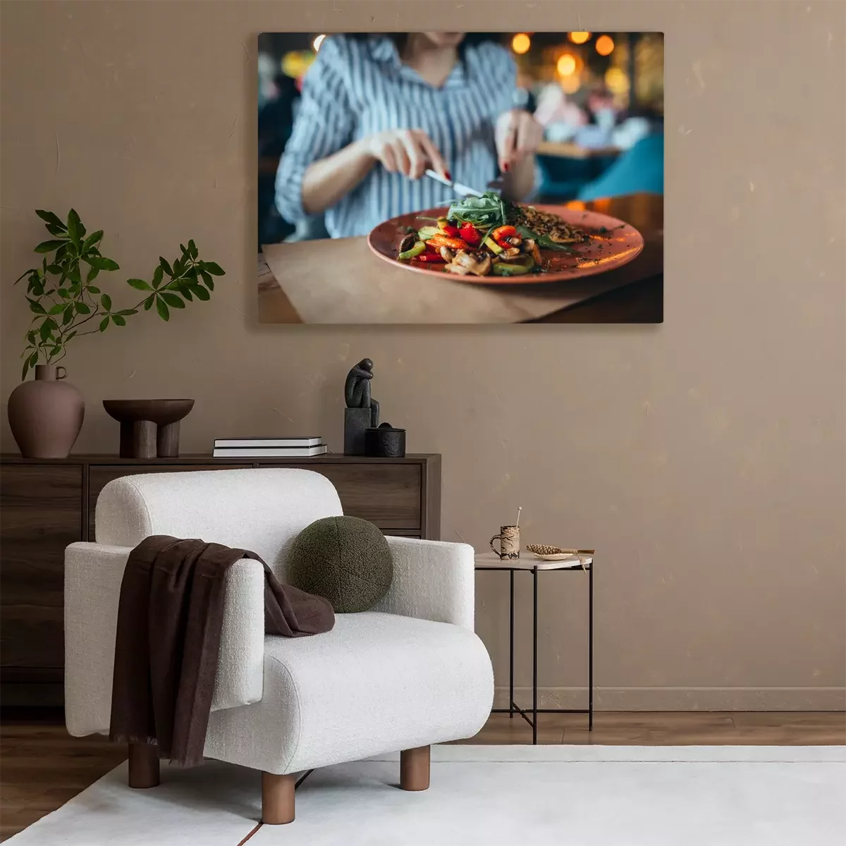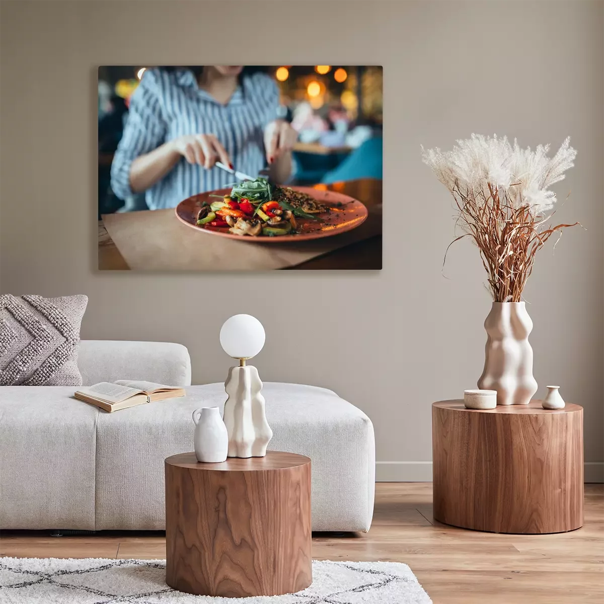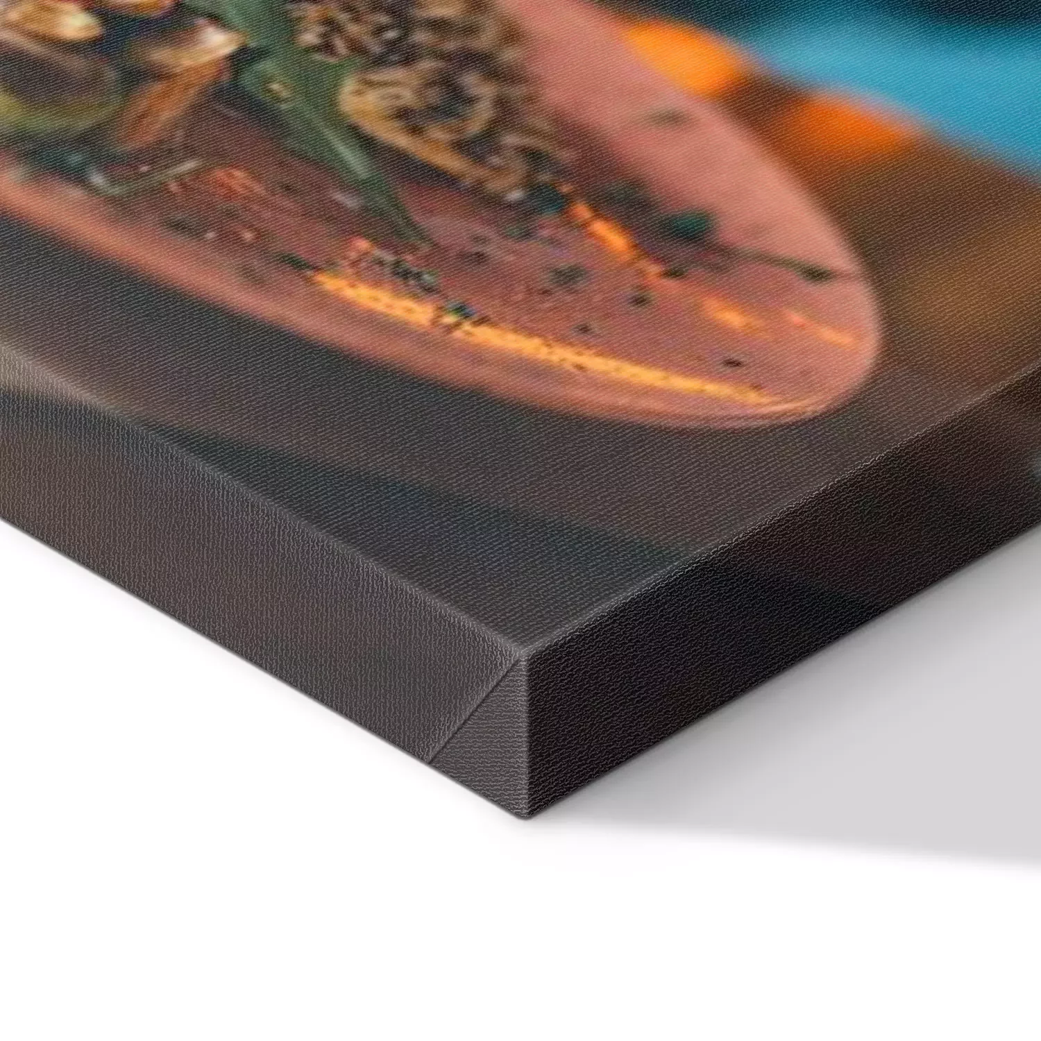 De print wordt aangebracht op hoogwaardig canvas dat op een schildersweefgetouw (spieraam) wordt gespannen. Omdat de print de zijranden bedekt, hoeft het ontwerp niet met een extra kader te worden omlijst. Wij raden ook composities aan die uit meerdere foto's bestaan en zo een coherente compositie vormen.