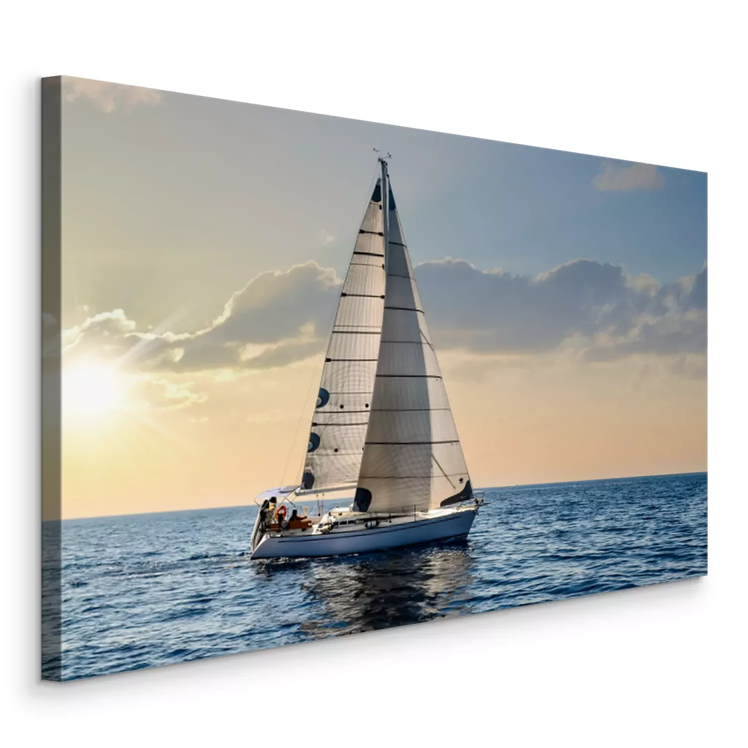 Canvas: Close-up sailboat sailing under a beautiful sunset