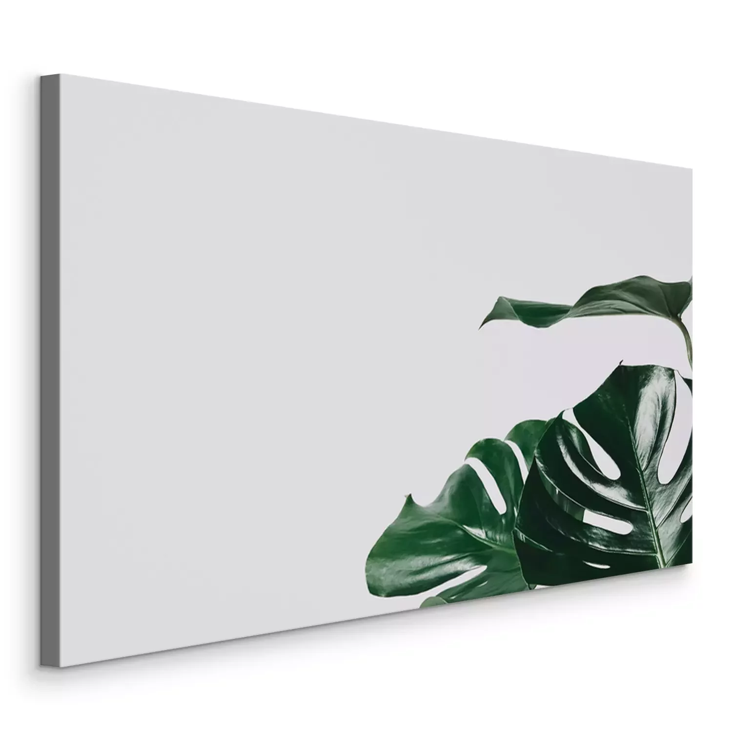 Canvas: Close-up shot van monstera bladeren geïsoleerd op wit