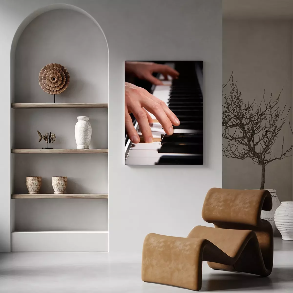 De print wordt aangebracht op hoogwaardig canvas dat op een schildersweefgetouw (spieraam) wordt gespannen. Omdat de print de zijranden bedekt, hoeft het ontwerp niet met een extra kader te worden omlijst. Wij raden ook composities aan die uit meerdere foto's bestaan en zo een coherente compositie vormen.