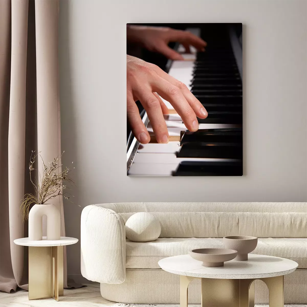 Canvas: Close-up van de handen die Elektrische Piano Keyboard