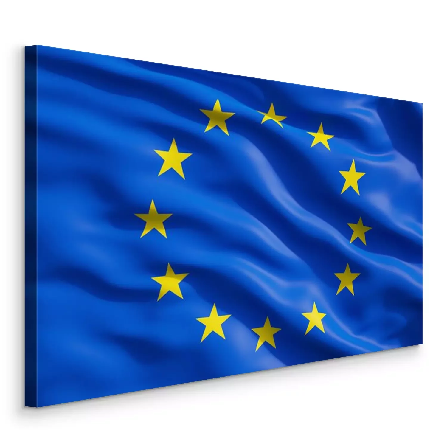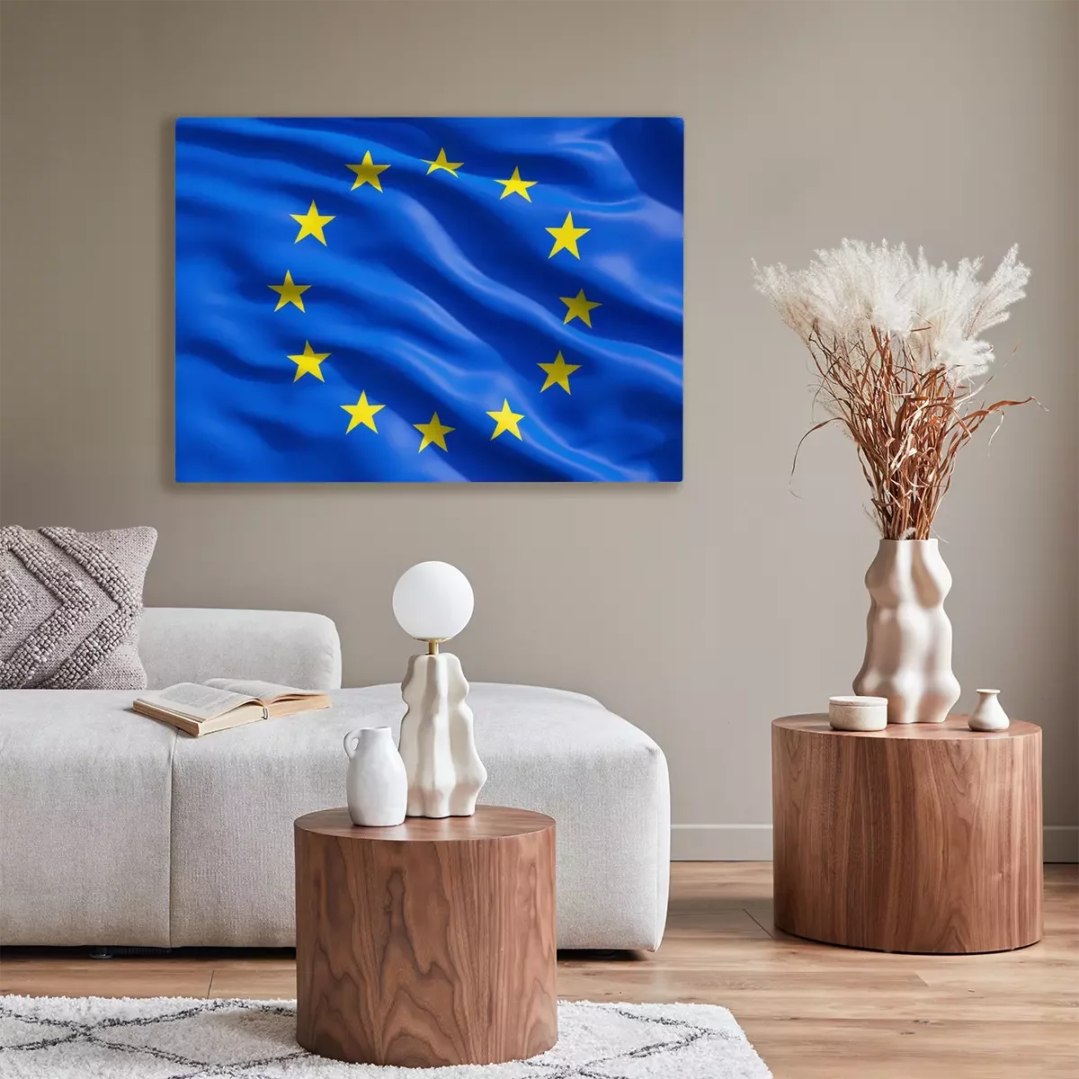 Canvas: Close-up van de vlag van de Europese Unie. EU Gordijn Vlag.
