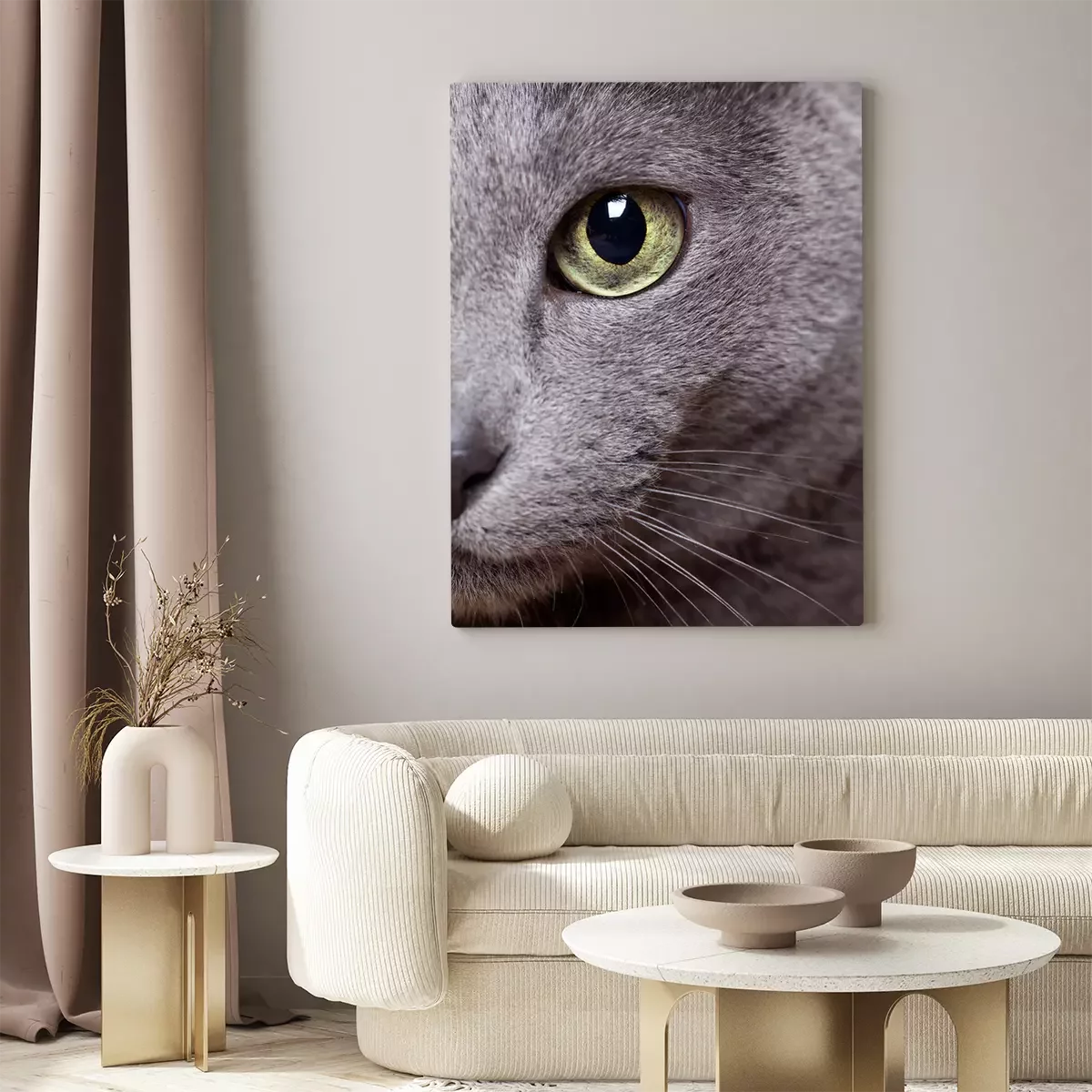 Canvas Close-up van een grijs huisdier