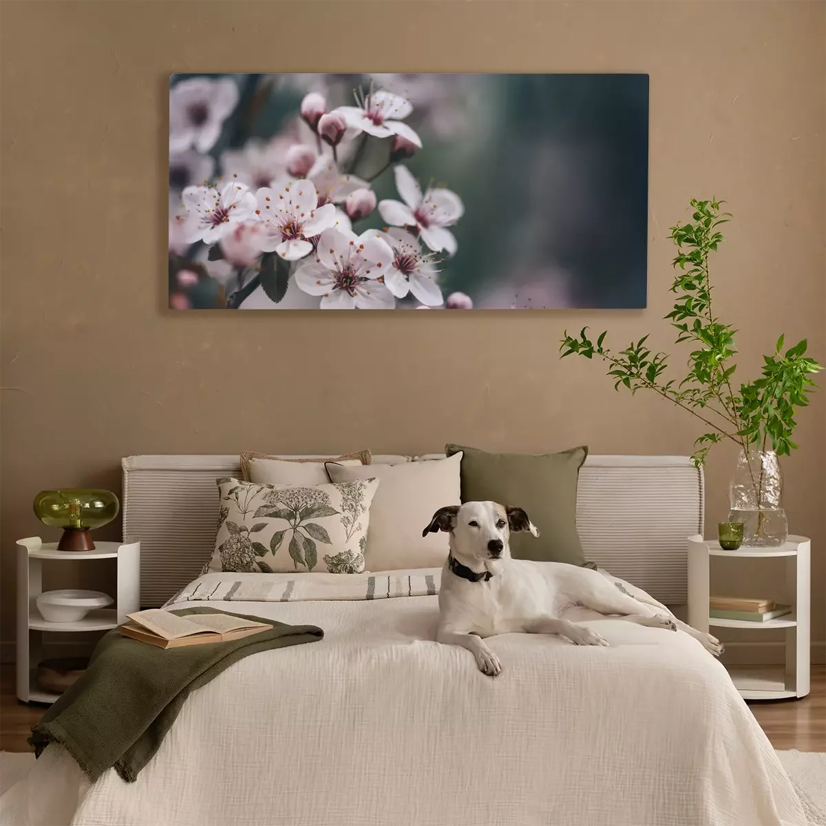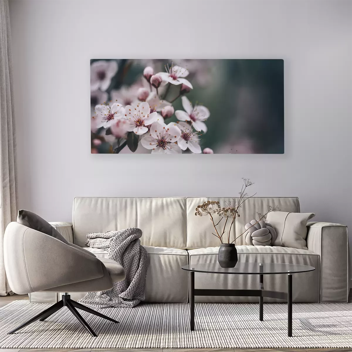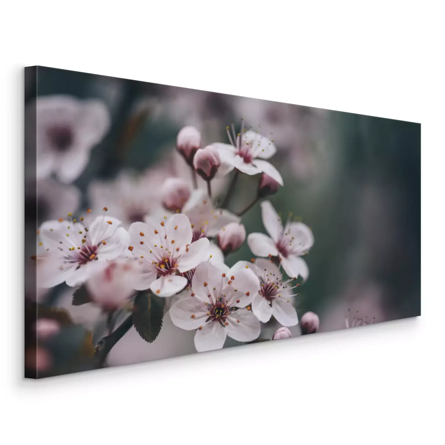 Canvas: Close-up van een kersenbloesem in volle bloei