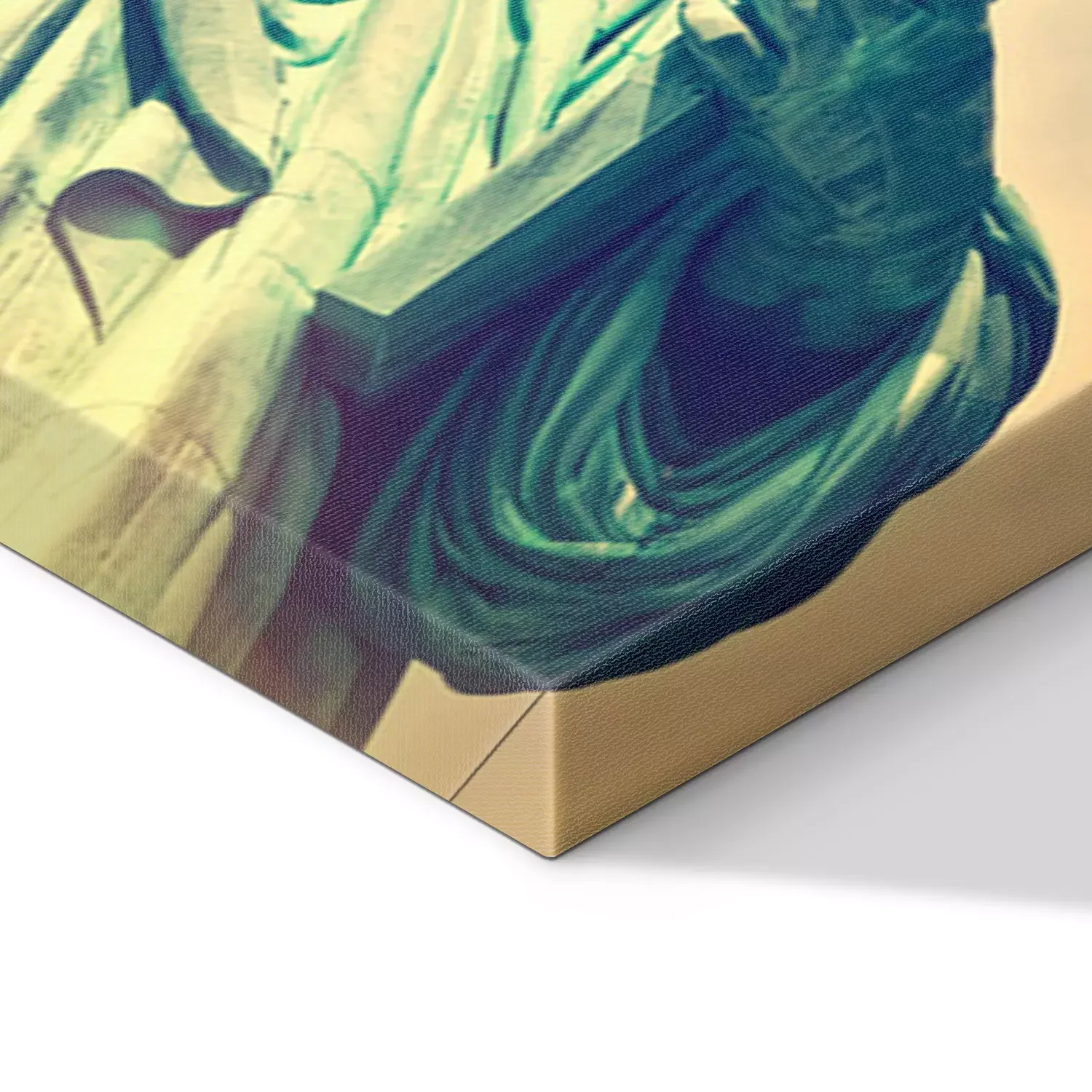 De print wordt aangebracht op hoogwaardig canvas dat op een schildersweefgetouw (spieraam) wordt gespannen. Omdat de print de zijranden bedekt, hoeft het ontwerp niet met een extra kader te worden omlijst. Wij raden ook composities aan die uit meerdere foto's bestaan en zo een coherente compositie vormen.
