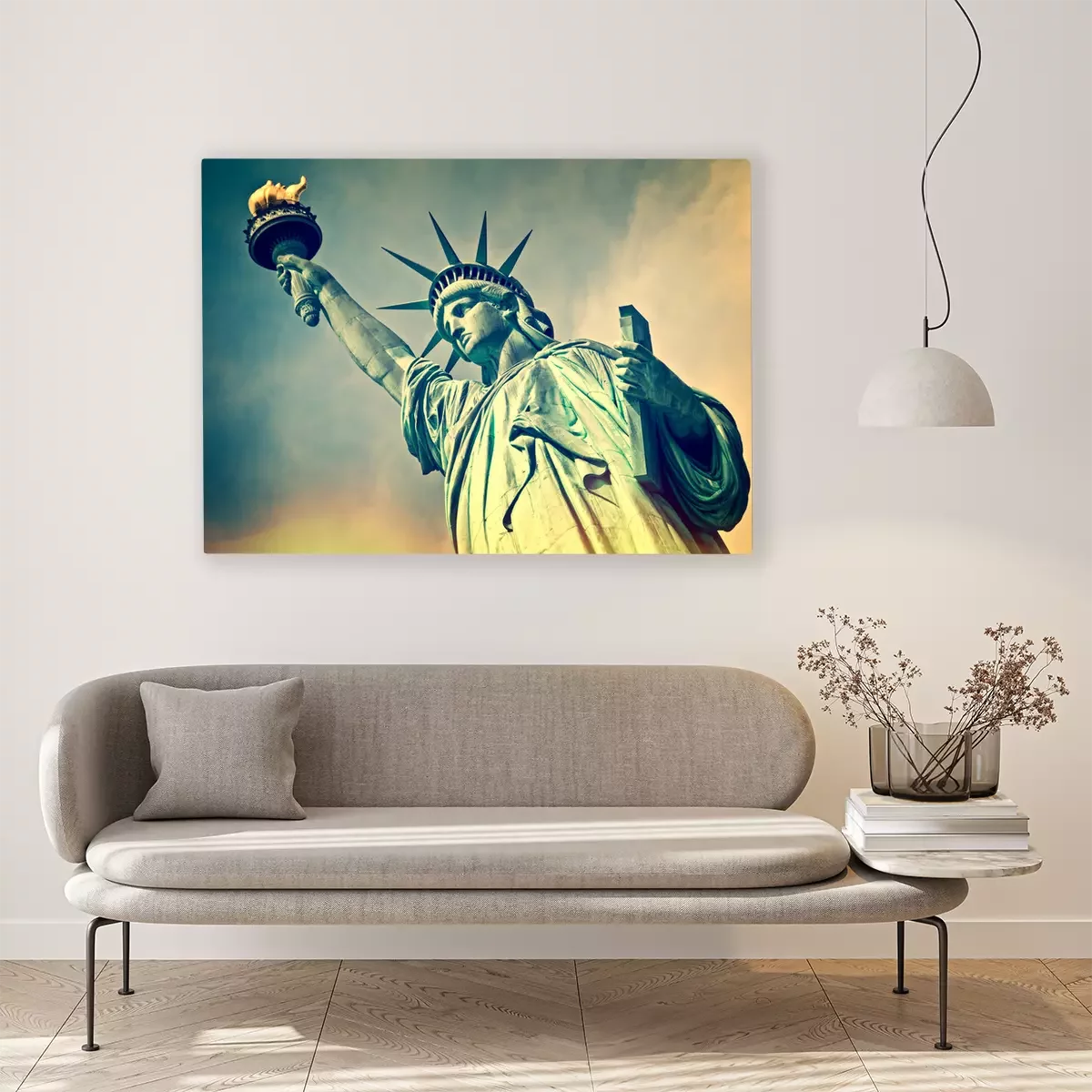 Canvas Close-up van het standbeeld van de vrijheid, New York City, vintage proces