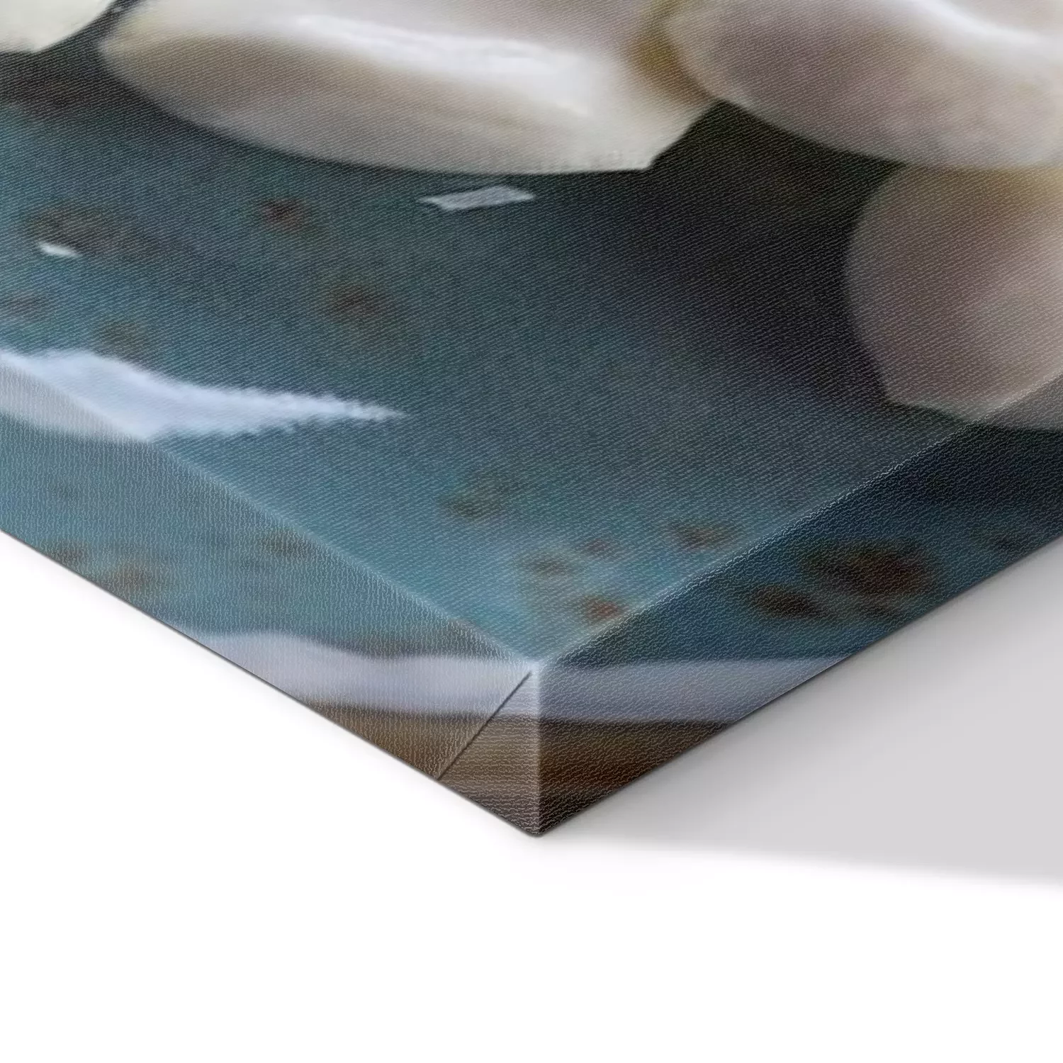 De print wordt aangebracht op hoogwaardig canvas dat op een schildersweefgetouw (spieraam) wordt gespannen. Omdat de print de zijranden bedekt, hoeft het ontwerp niet met een extra kader te worden omlijst. Wij raden ook composities aan die uit meerdere foto's bestaan en zo een coherente compositie vormen.