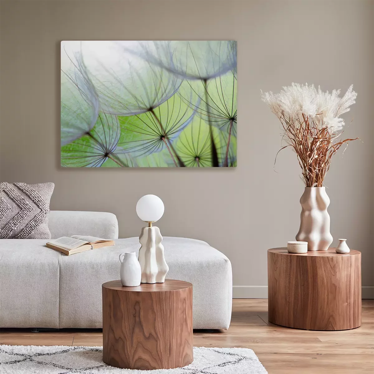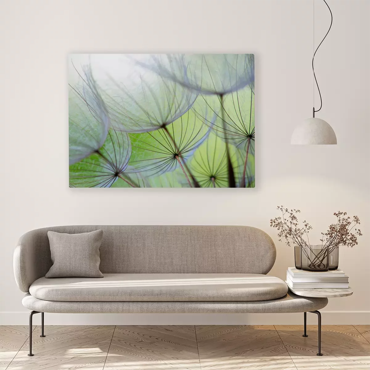 Close-up van paardenbloemzaden in het groen