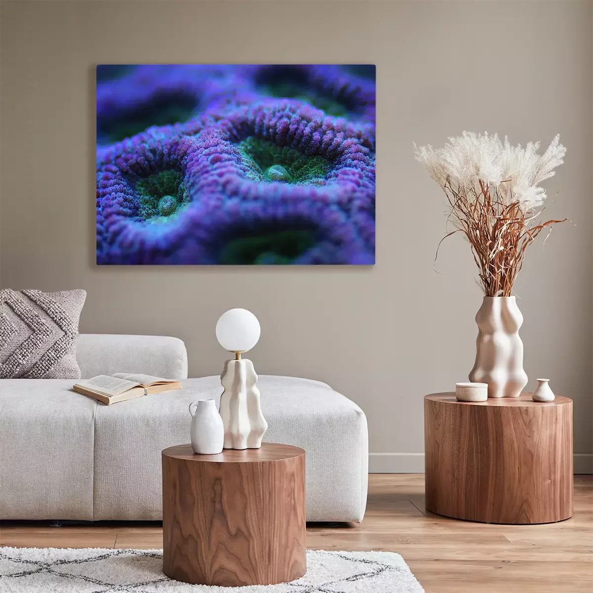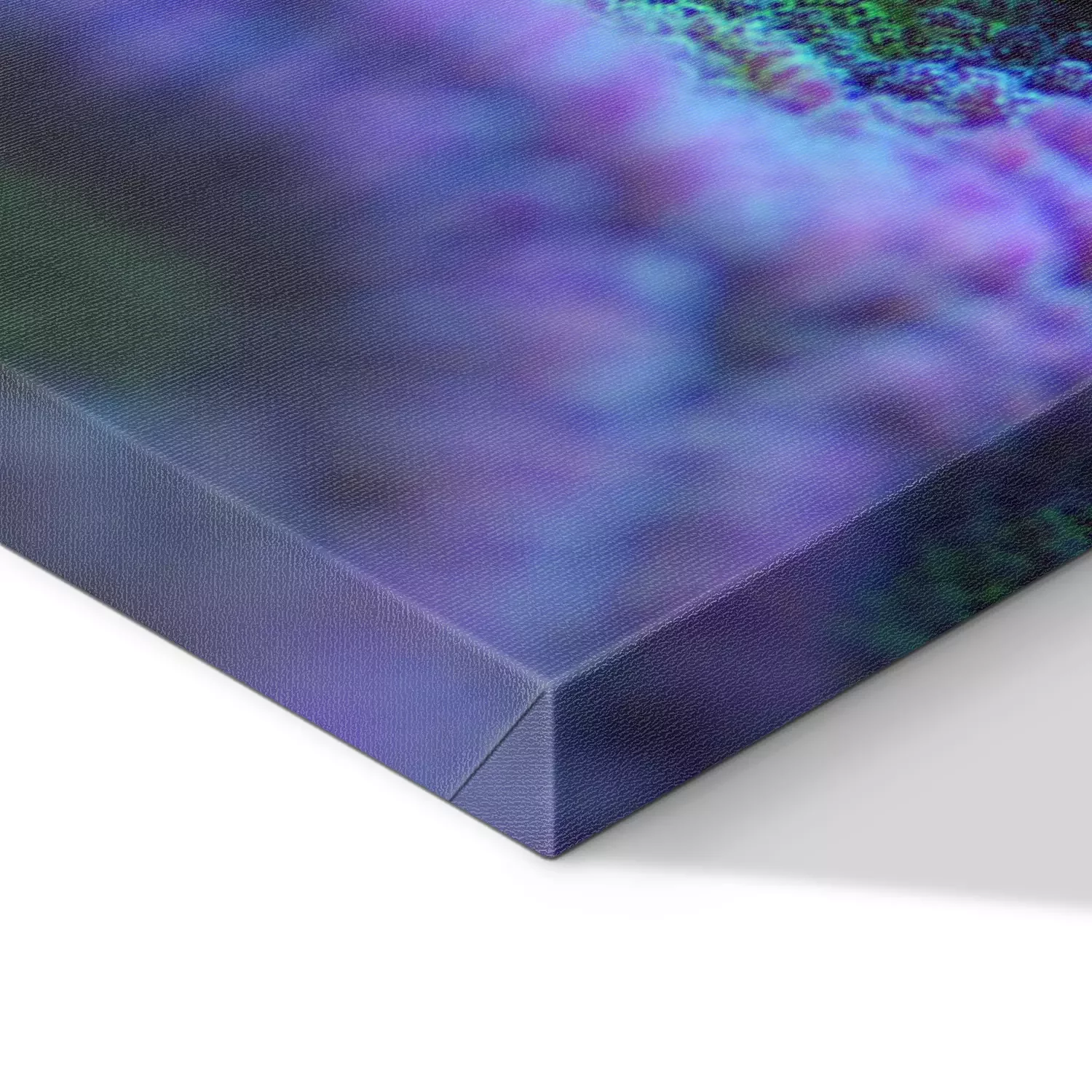 De print wordt aangebracht op hoogwaardig canvas dat op een schildersweefgetouw (spieraam) wordt gespannen. Omdat de print de zijranden bedekt, hoeft het ontwerp niet met een extra kader te worden omlijst. Wij raden ook composities aan die uit meerdere foto's bestaan en zo een coherente compositie vormen.