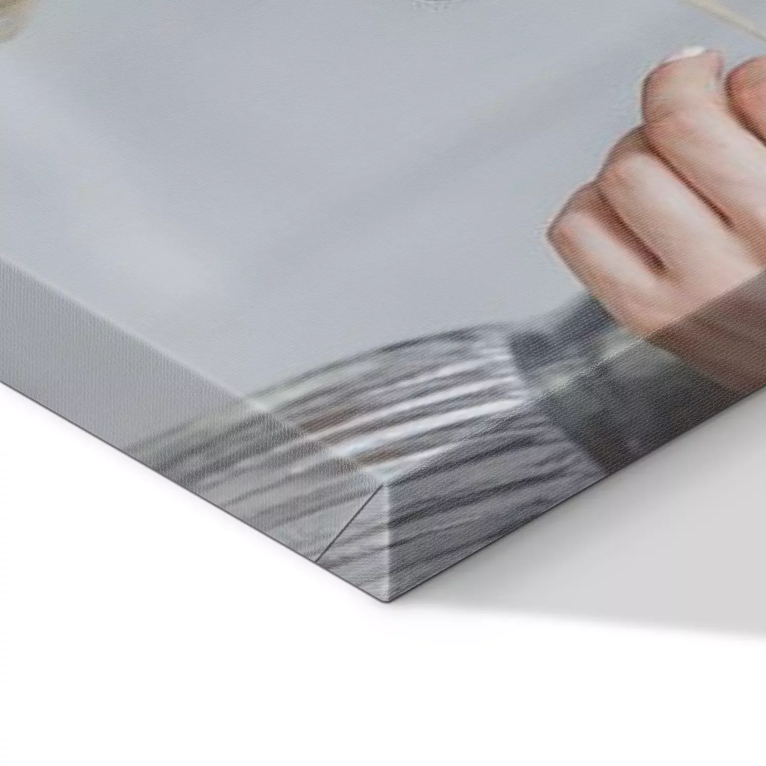 De print wordt aangebracht op hoogwaardig canvas dat op een schildersweefgetouw (spieraam) wordt gespannen. Omdat de print de zijranden bedekt, hoeft het ontwerp niet met een extra kader te worden omlijst. Wij raden ook composities aan die uit meerdere foto's bestaan en zo een coherente compositie vormen.