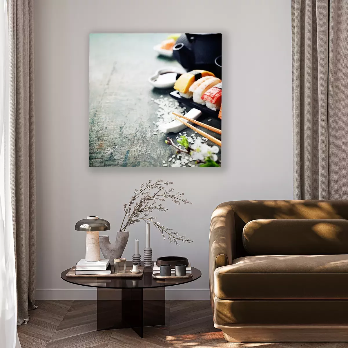 De print wordt aangebracht op hoogwaardig canvas dat op een schildersweefgetouw (spieraam) wordt gespannen. Omdat de print de zijranden bedekt, hoeft het ontwerp niet met een extra kader te worden omlijst. Wij raden ook composities aan die uit meerdere foto's bestaan en zo een coherente compositie vormen.