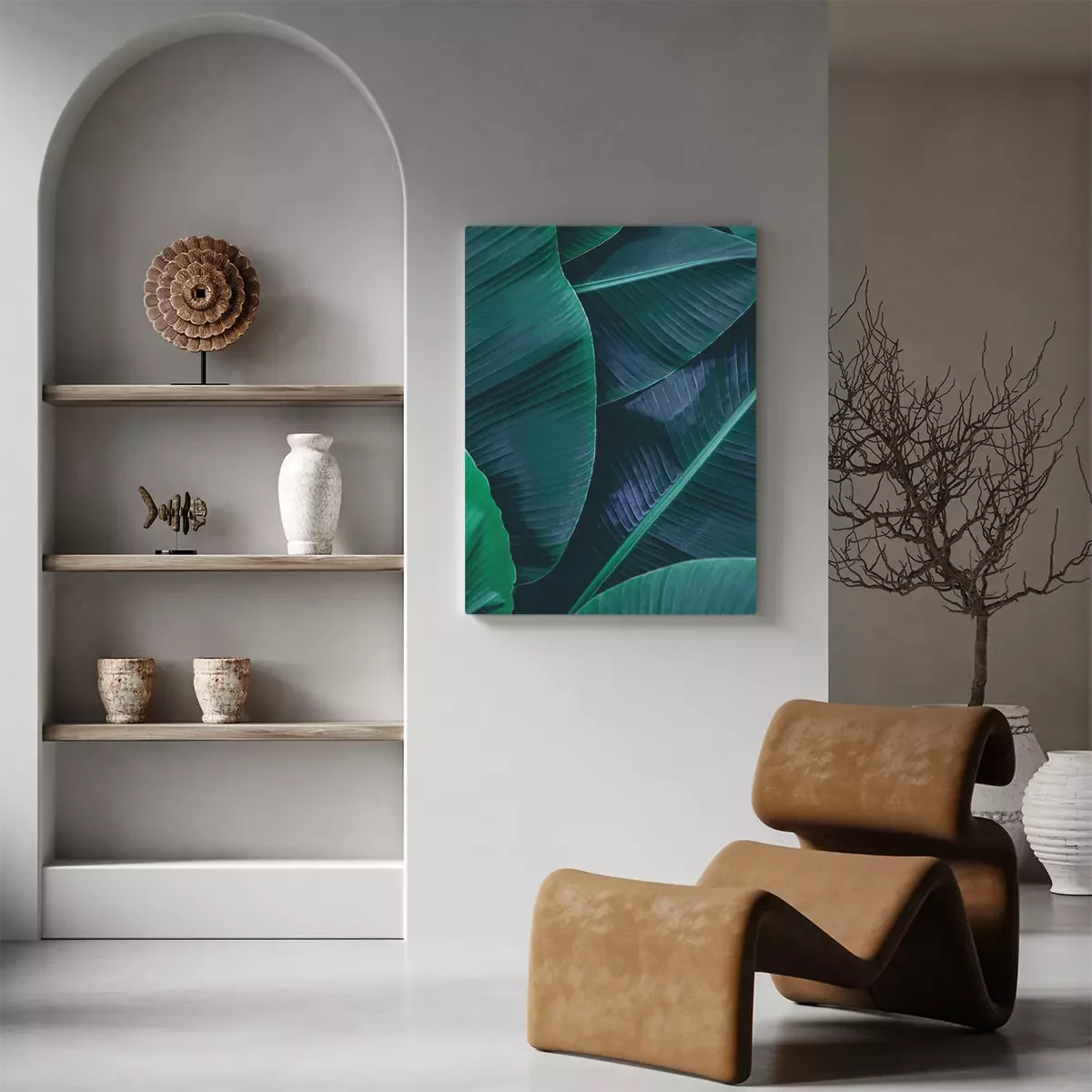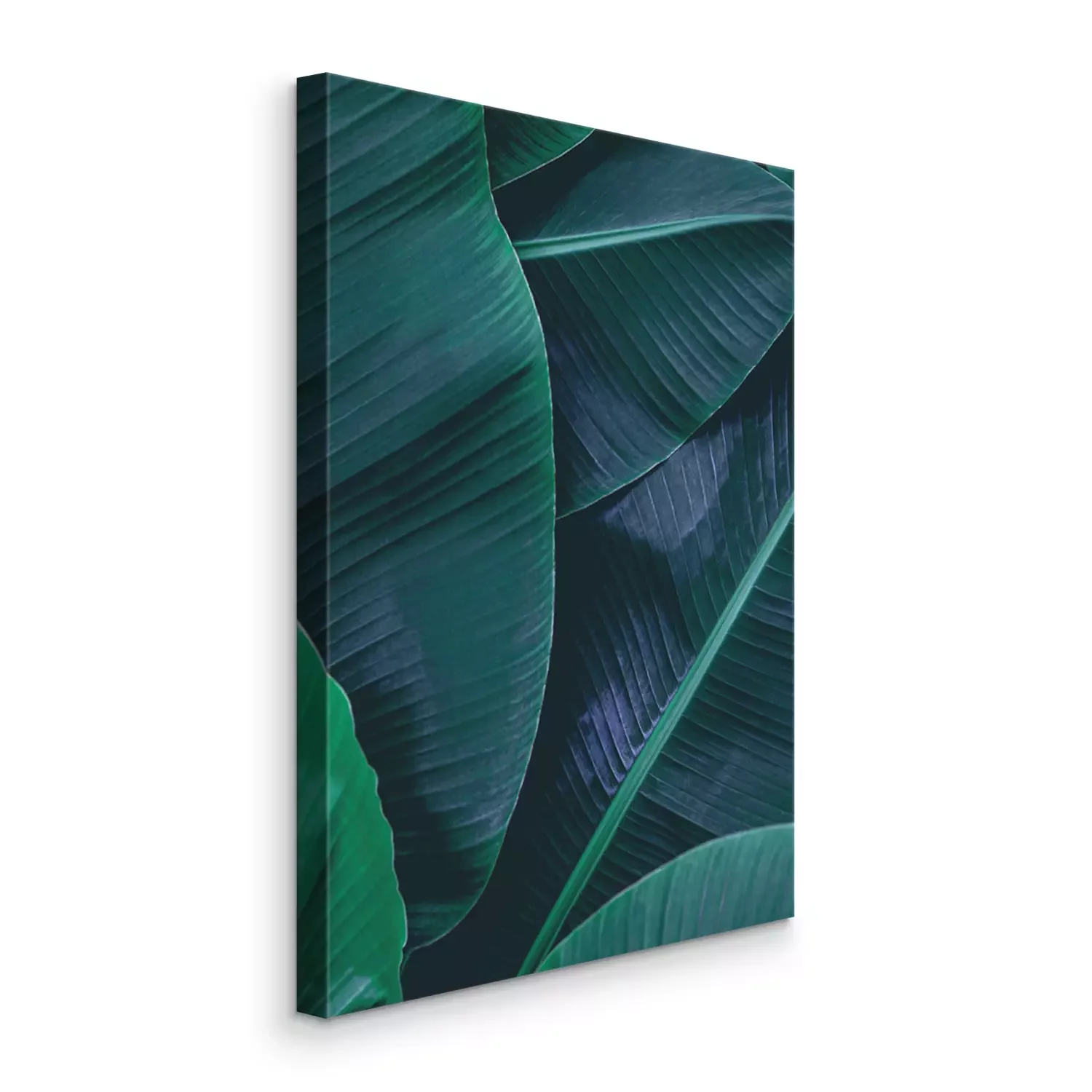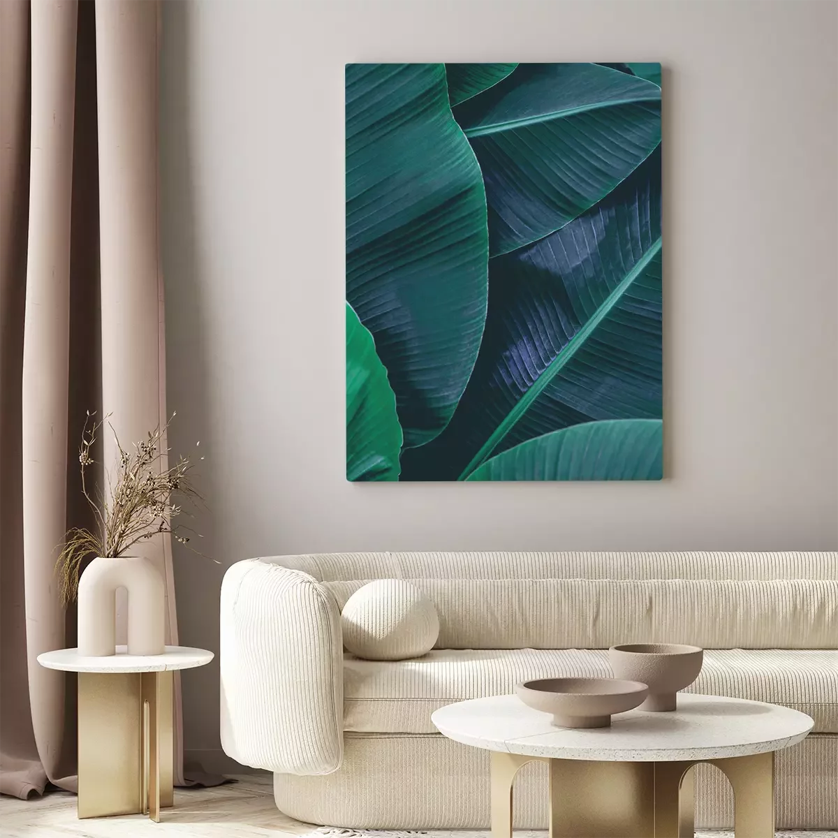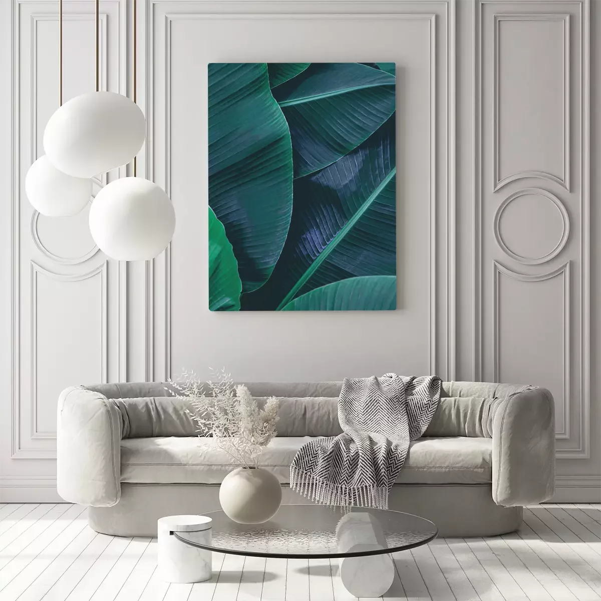 Canvas: Closeup nature view of tropical leaf, dark wallpaper concept, abstract nature green background