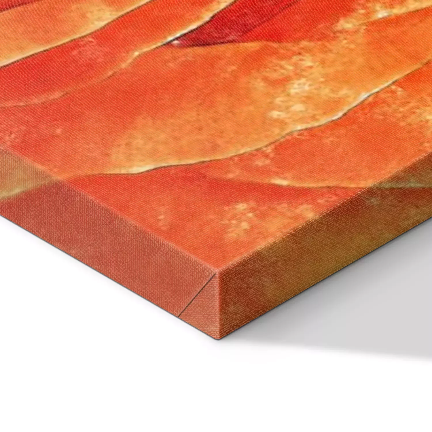 De print wordt aangebracht op hoogwaardig canvas dat op een schildersweefgetouw (spieraam) wordt gespannen. Omdat de print de zijranden bedekt, hoeft het ontwerp niet met een extra kader te worden omlijst. Wij raden ook composities aan die uit meerdere foto's bestaan en zo een coherente compositie vormen.