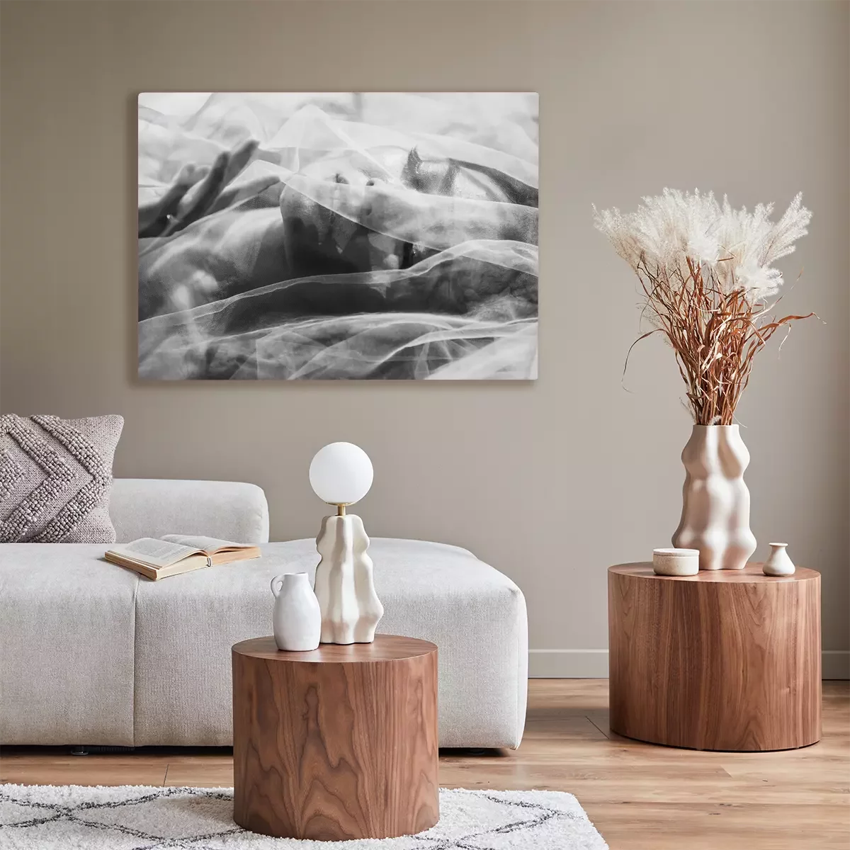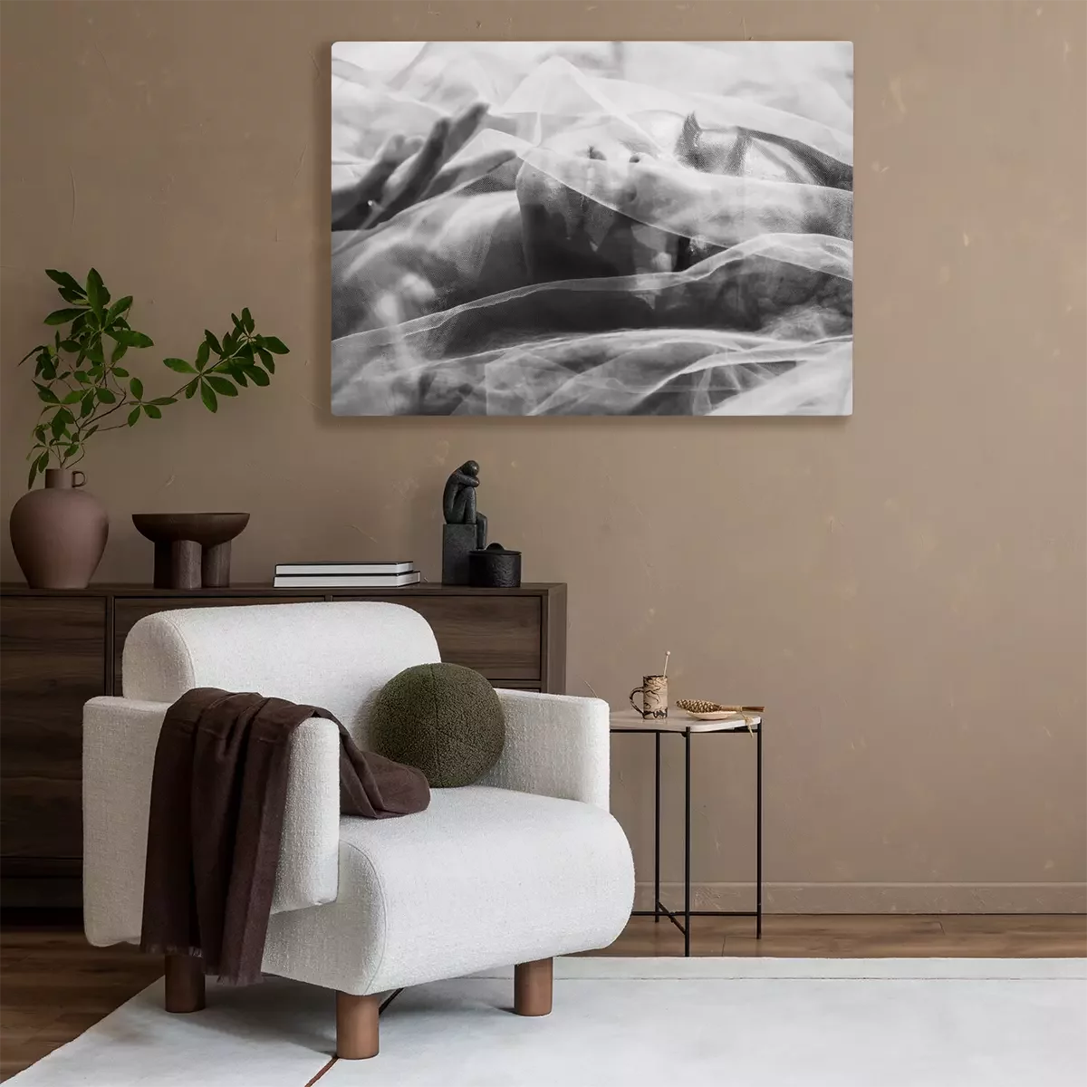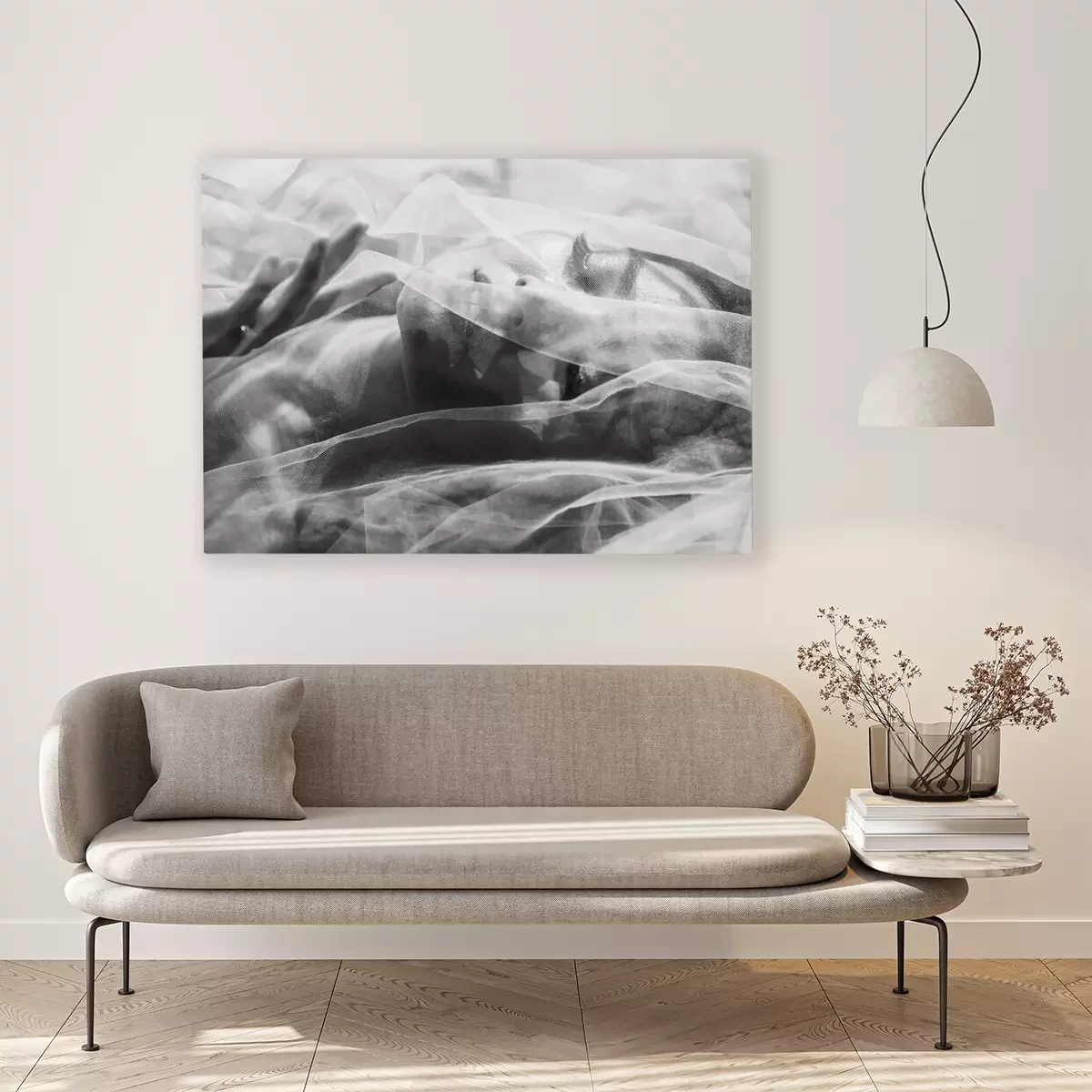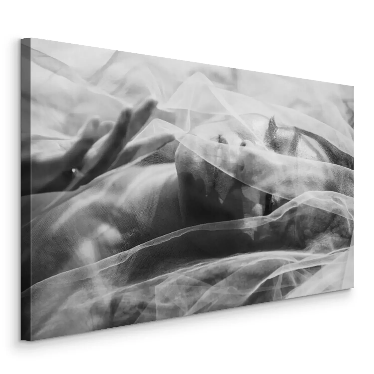 Canvas Closeup Sexy Erotic Woman Face under see through fabric with monontone art photography.