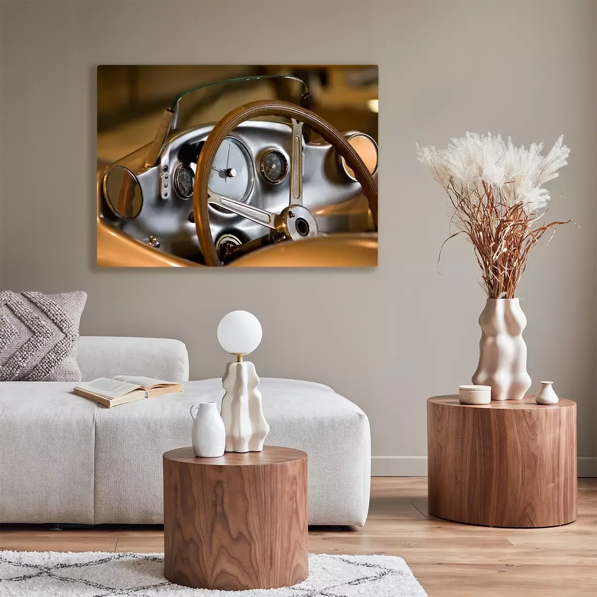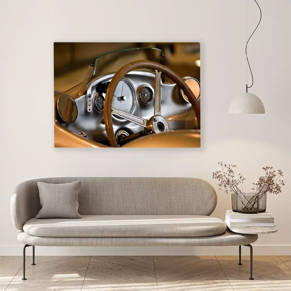 Canvas: Cockpit van een oude sportwagen