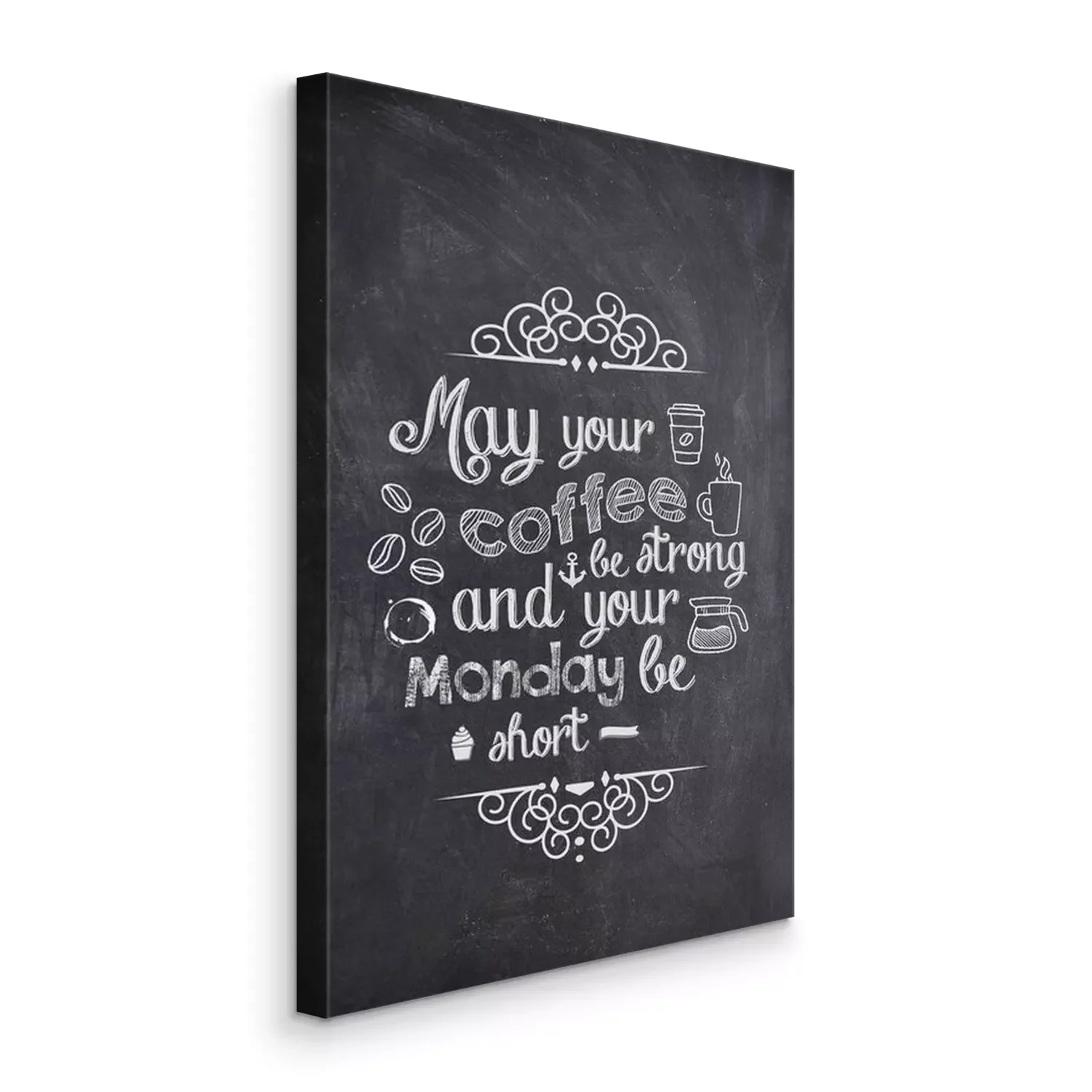 Canvas Coffee Quote geschreven met krijt op een zwarte raad