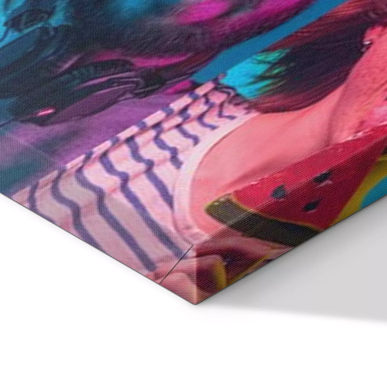 De print wordt aangebracht op hoogwaardig canvas dat op een schildersweefgetouw (spieraam) wordt gespannen. Omdat de print de zijranden bedekt, hoeft het ontwerp niet met een extra kader te worden omlijst. Wij raden ook composities aan die uit meerdere foto's bestaan en zo een coherente compositie vormen.