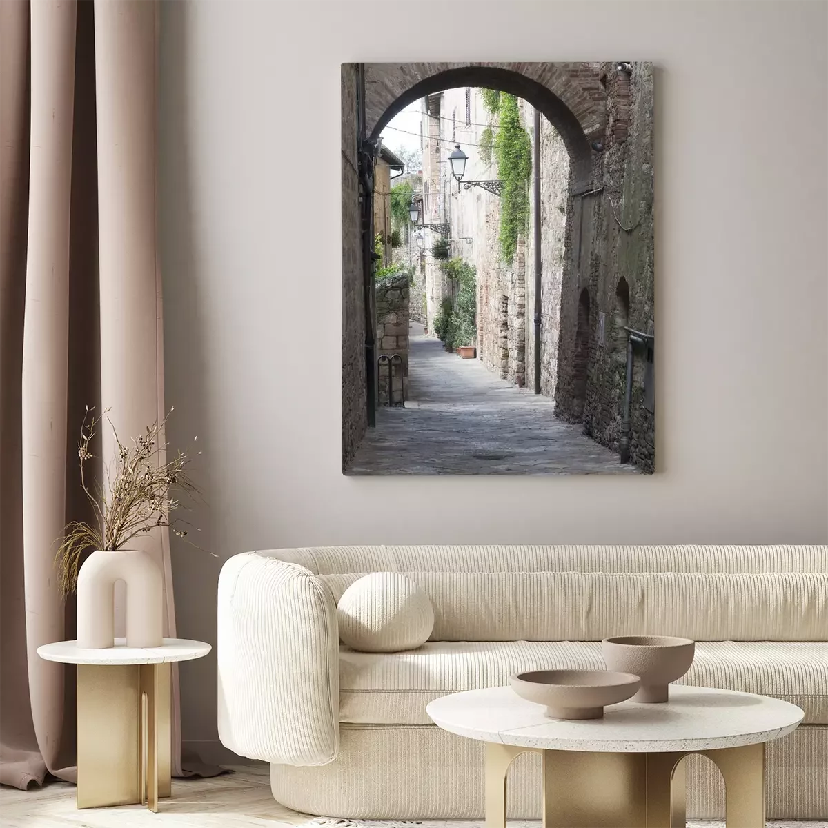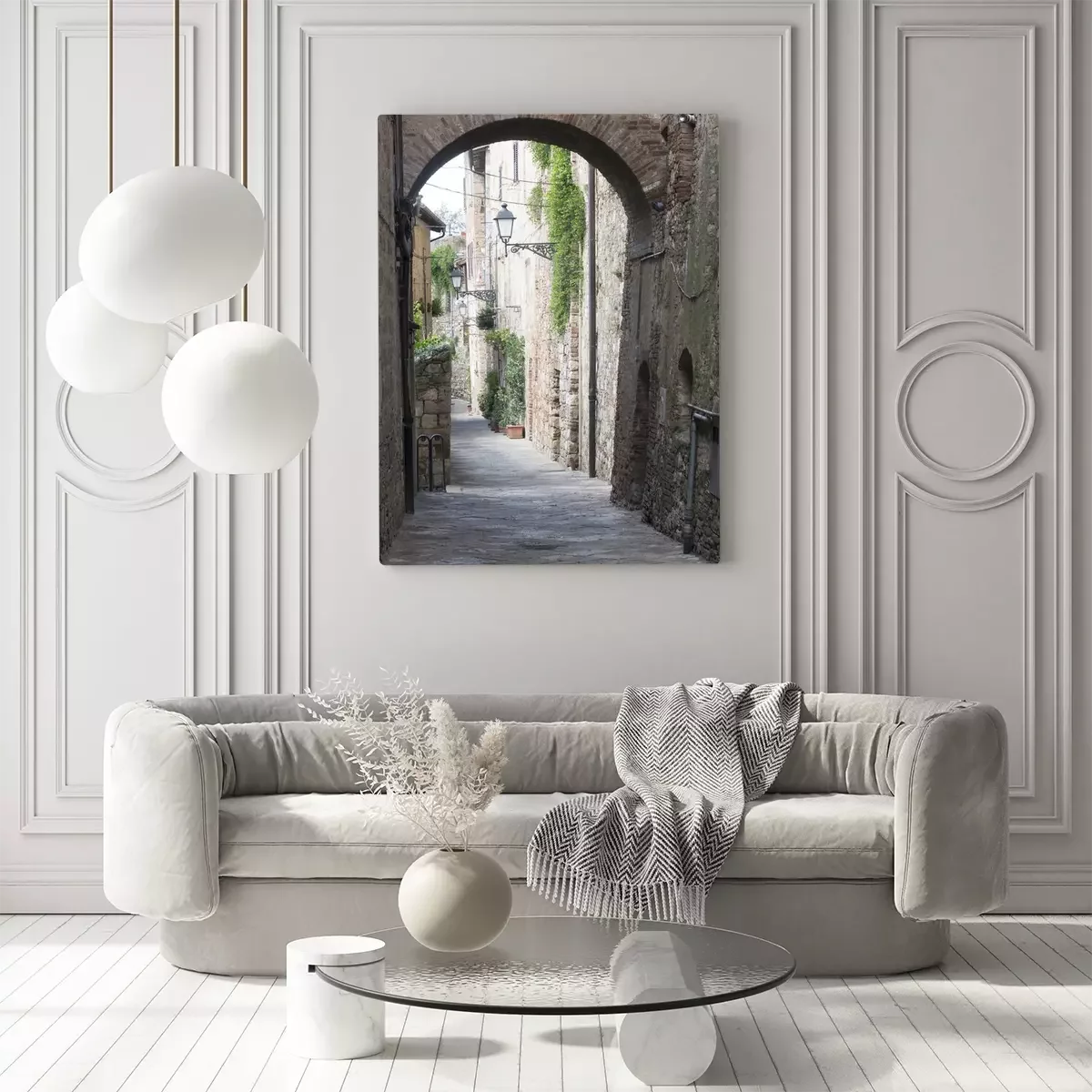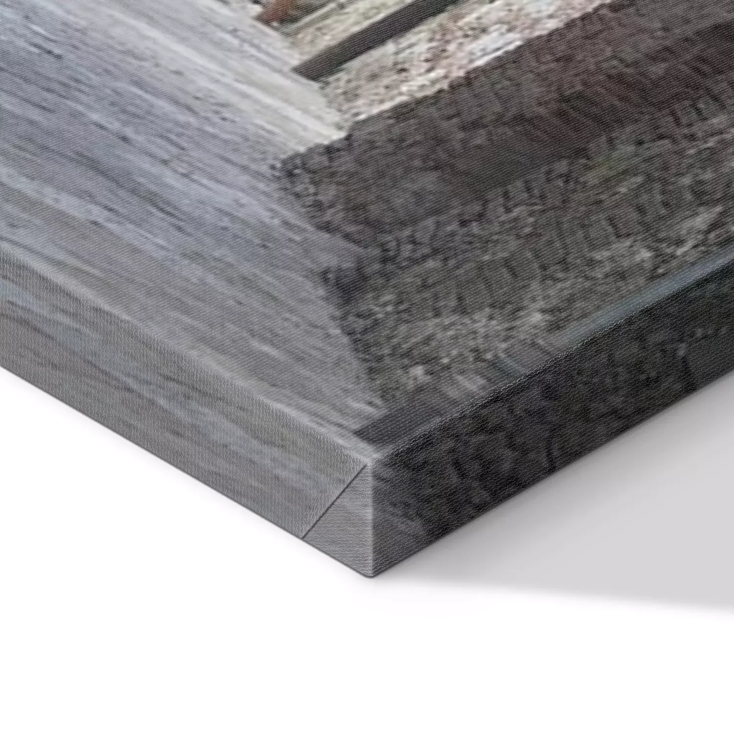 De print wordt aangebracht op hoogwaardig canvas dat op een schildersweefgetouw (spieraam) wordt gespannen. Omdat de print de zijranden bedekt, hoeft het ontwerp niet met een extra kader te worden omlijst. Wij raden ook composities aan die uit meerdere foto's bestaan en zo een coherente compositie vormen.