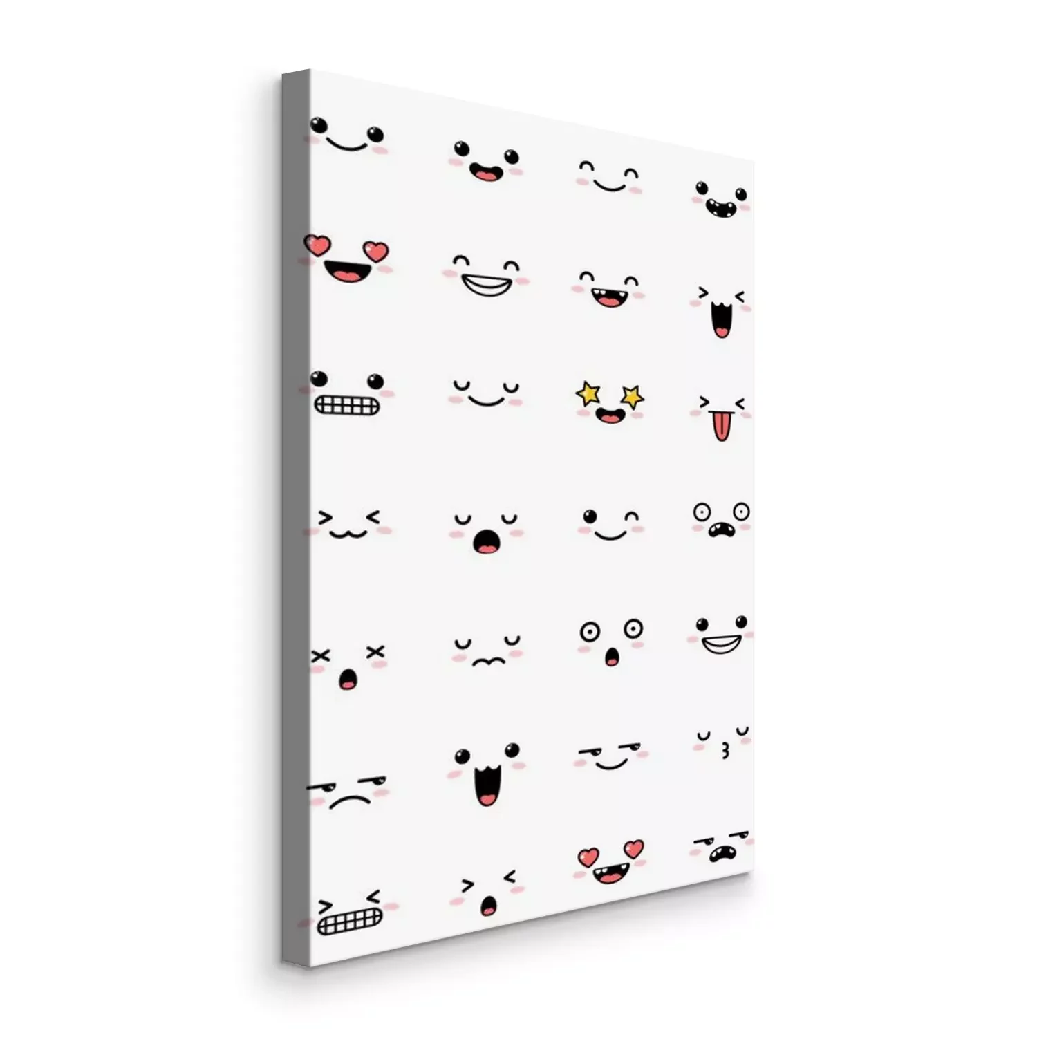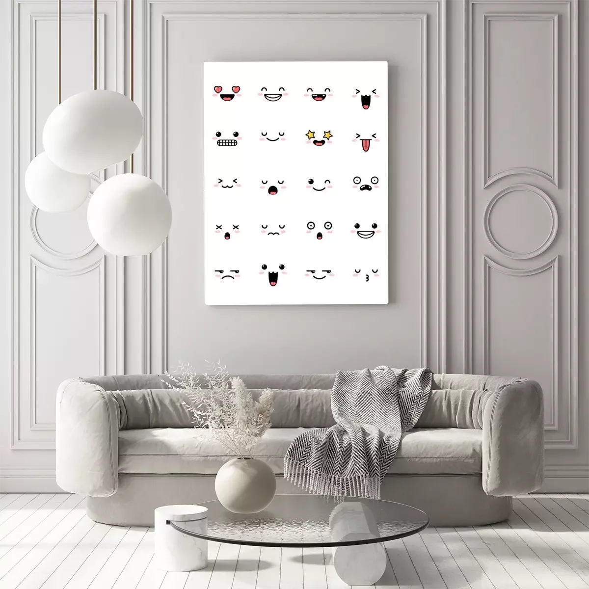 Canvas Collection of sweet kawaii emoticon emoji. Set of cute cartoon manga emotions