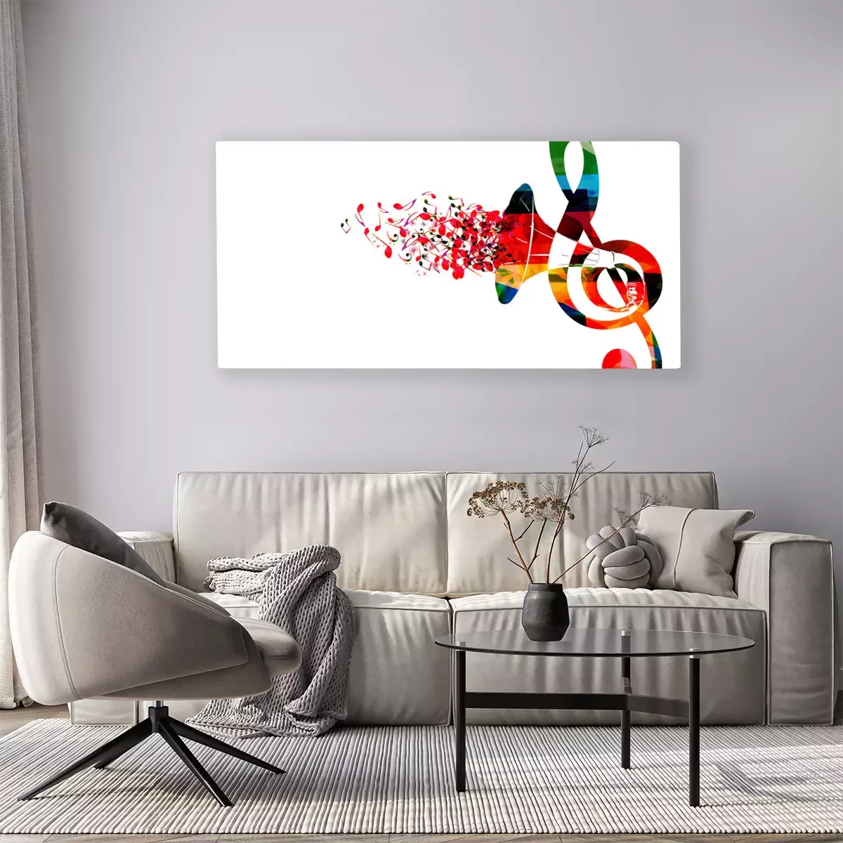 Canvas  Colorful G-clef with gramophone horn isolated vector illustration design. Music background. Retro phonograph horn with music notes, music festival poster, concert events, party flyer