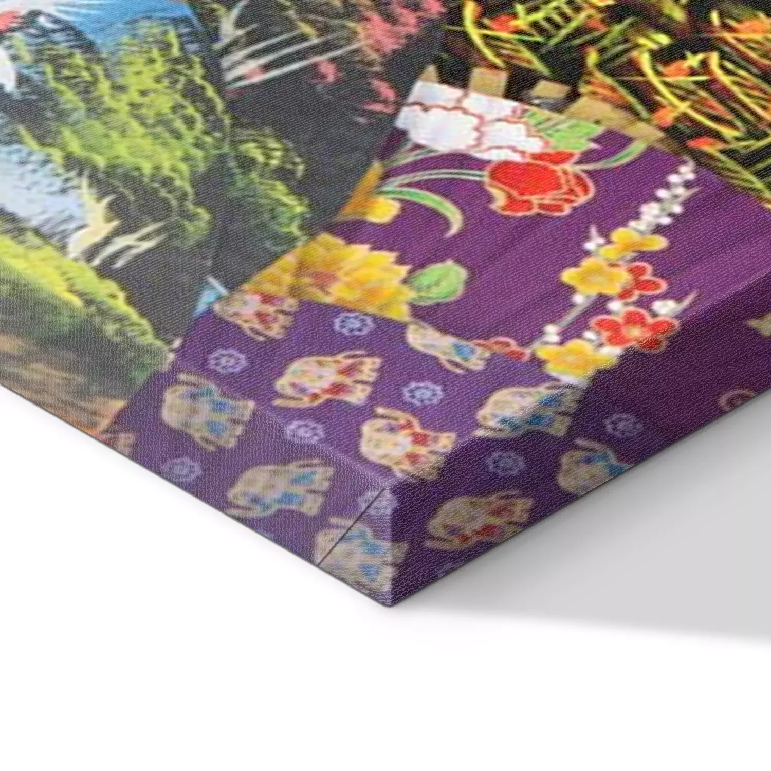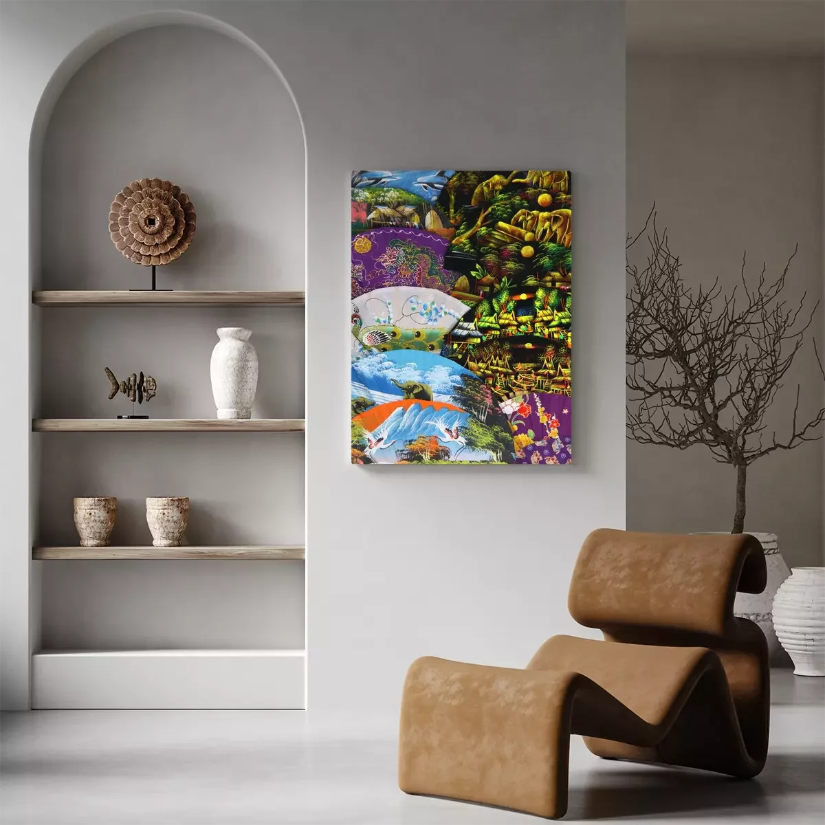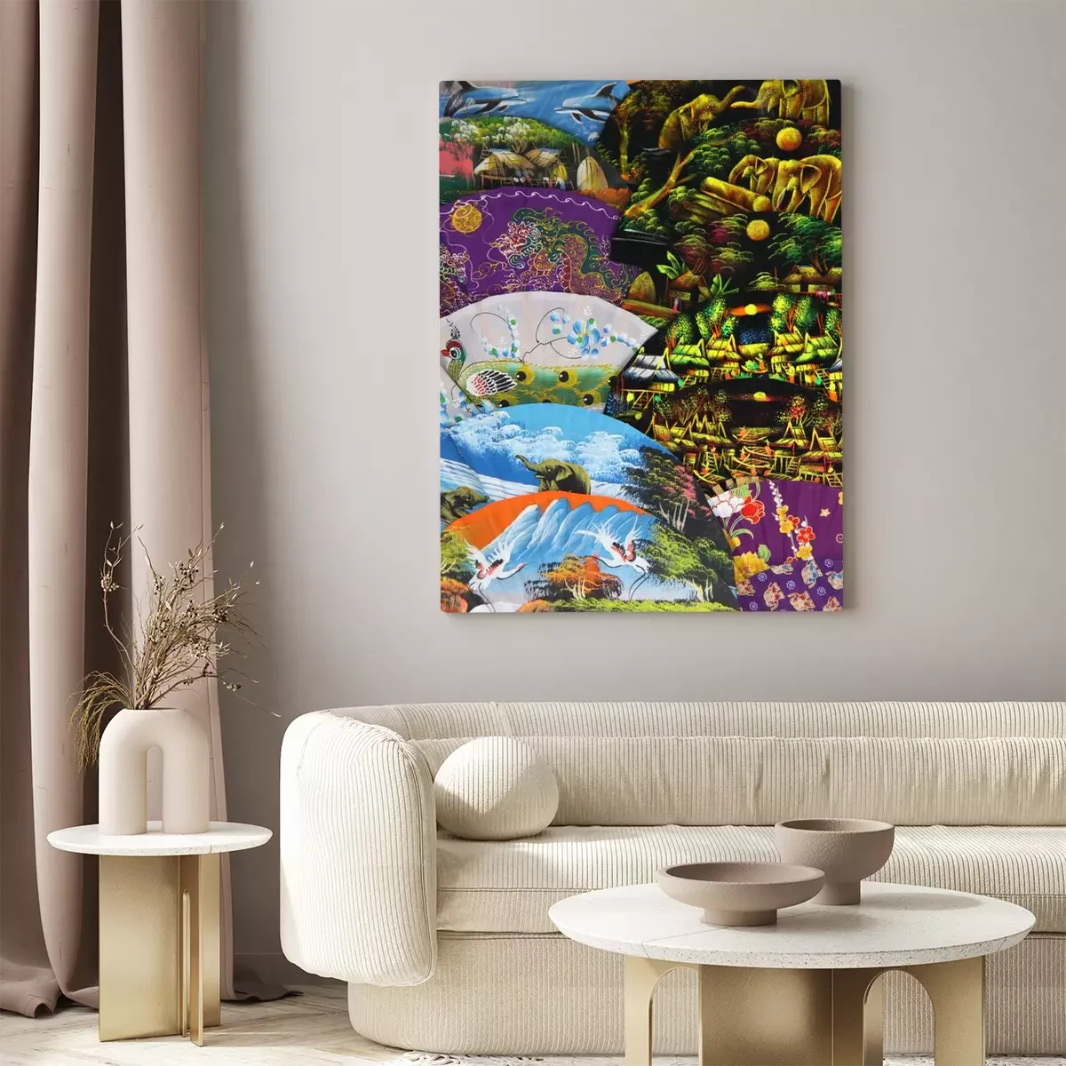 De print wordt aangebracht op hoogwaardig canvas dat op een schildersweefgetouw (spieraam) wordt gespannen. Omdat de print de zijranden bedekt, hoeft het ontwerp niet met een extra kader te worden omlijst. Wij raden ook composities aan die uit meerdere foto's bestaan en zo een coherente compositie vormen.