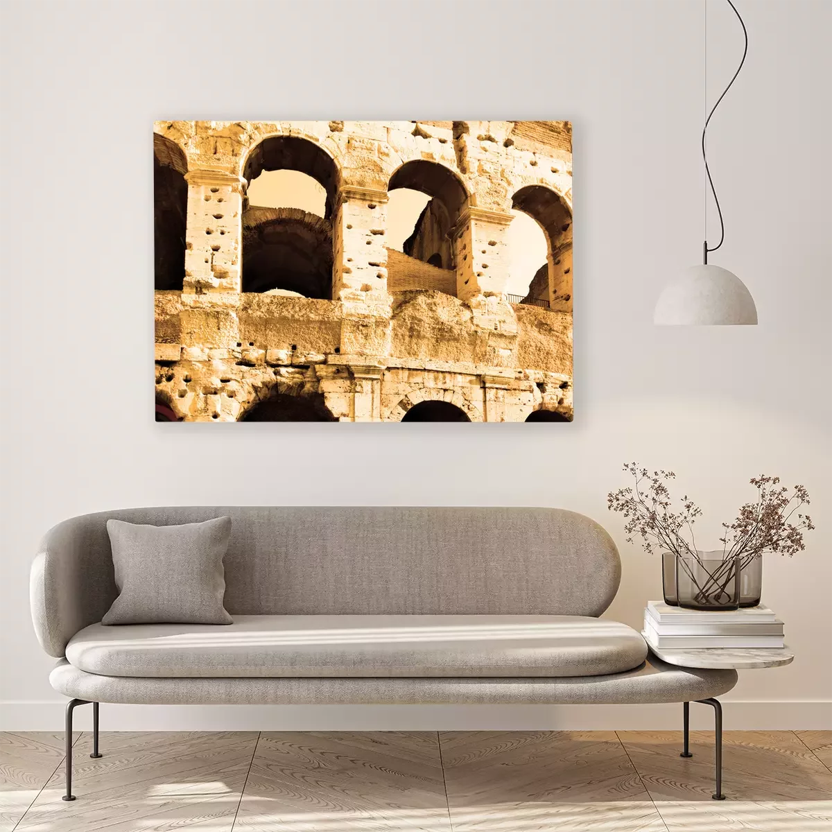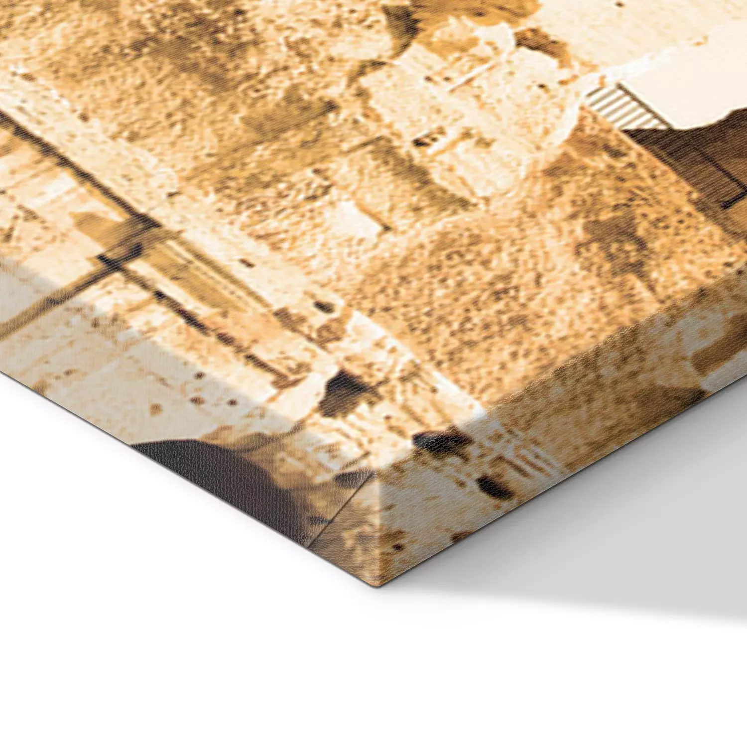 De print wordt aangebracht op hoogwaardig canvas dat op een schildersweefgetouw (spieraam) wordt gespannen. Omdat de print de zijranden bedekt, hoeft het ontwerp niet met een extra kader te worden omlijst. Wij raden ook composities aan die uit meerdere foto's bestaan en zo een coherente compositie vormen.