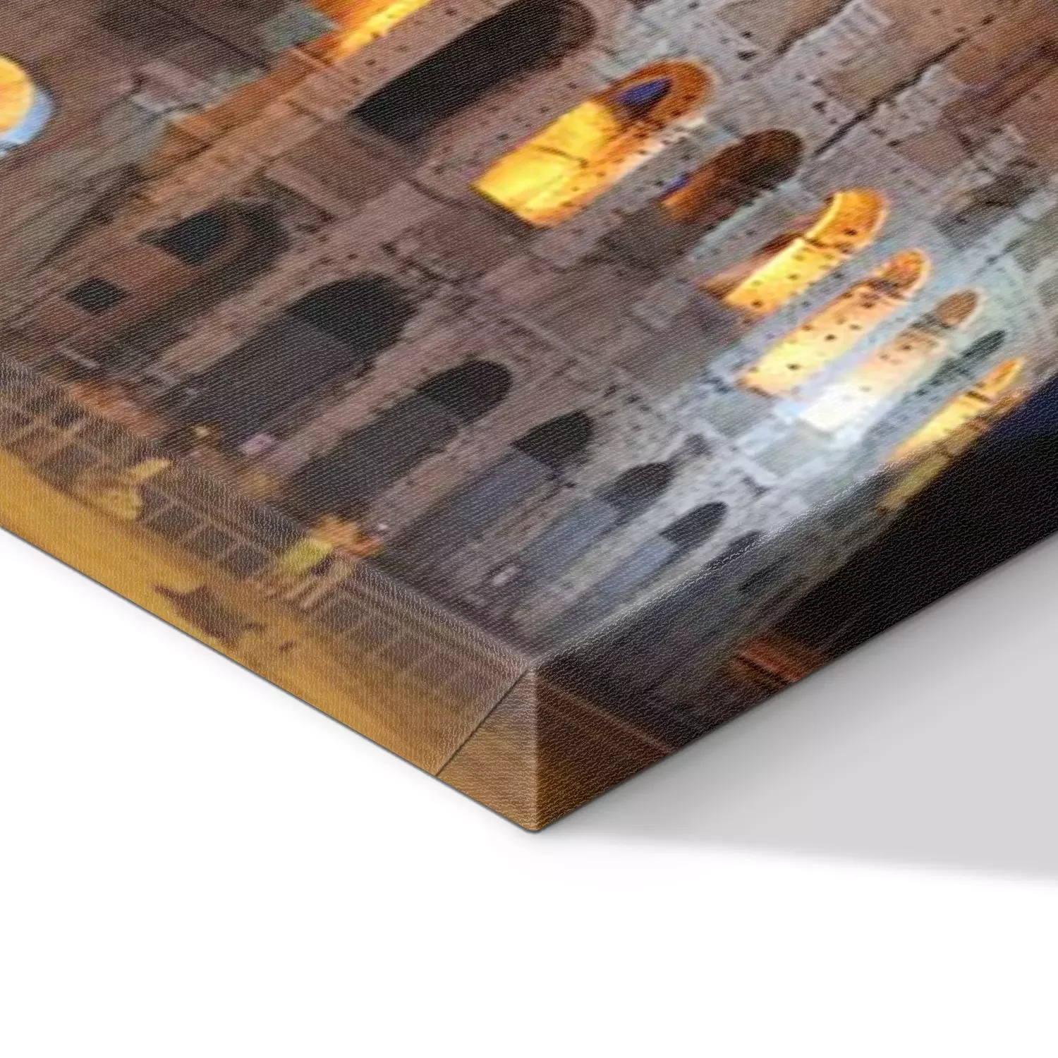 De print wordt aangebracht op hoogwaardig canvas dat op een schildersweefgetouw (spieraam) wordt gespannen. Omdat de print de zijranden bedekt, hoeft het ontwerp niet met een extra kader te worden omlijst. Wij raden ook composities aan die uit meerdere foto's bestaan en zo een coherente compositie vormen.