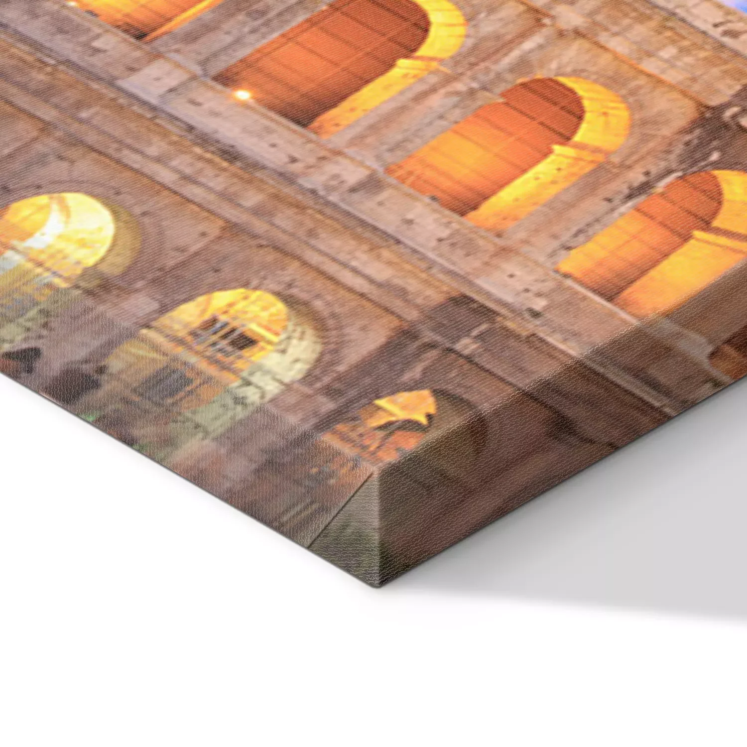 De print wordt aangebracht op hoogwaardig canvas dat op een schildersweefgetouw (spieraam) wordt gespannen. Omdat de print de zijranden bedekt, hoeft het ontwerp niet met een extra kader te worden omlijst. Wij raden ook composities aan die uit meerdere foto's bestaan en zo een coherente compositie vormen.