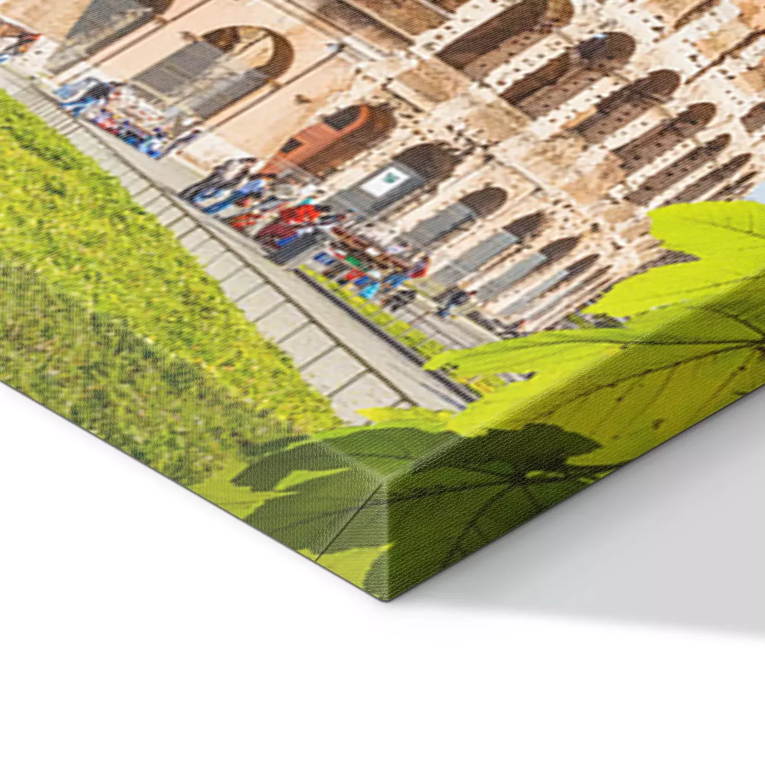 De print wordt aangebracht op hoogwaardig canvas dat op een schildersweefgetouw (spieraam) wordt gespannen. Omdat de print de zijranden bedekt, hoeft het ontwerp niet met een extra kader te worden omlijst. Wij raden ook composities aan die uit meerdere foto's bestaan en zo een coherente compositie vormen.