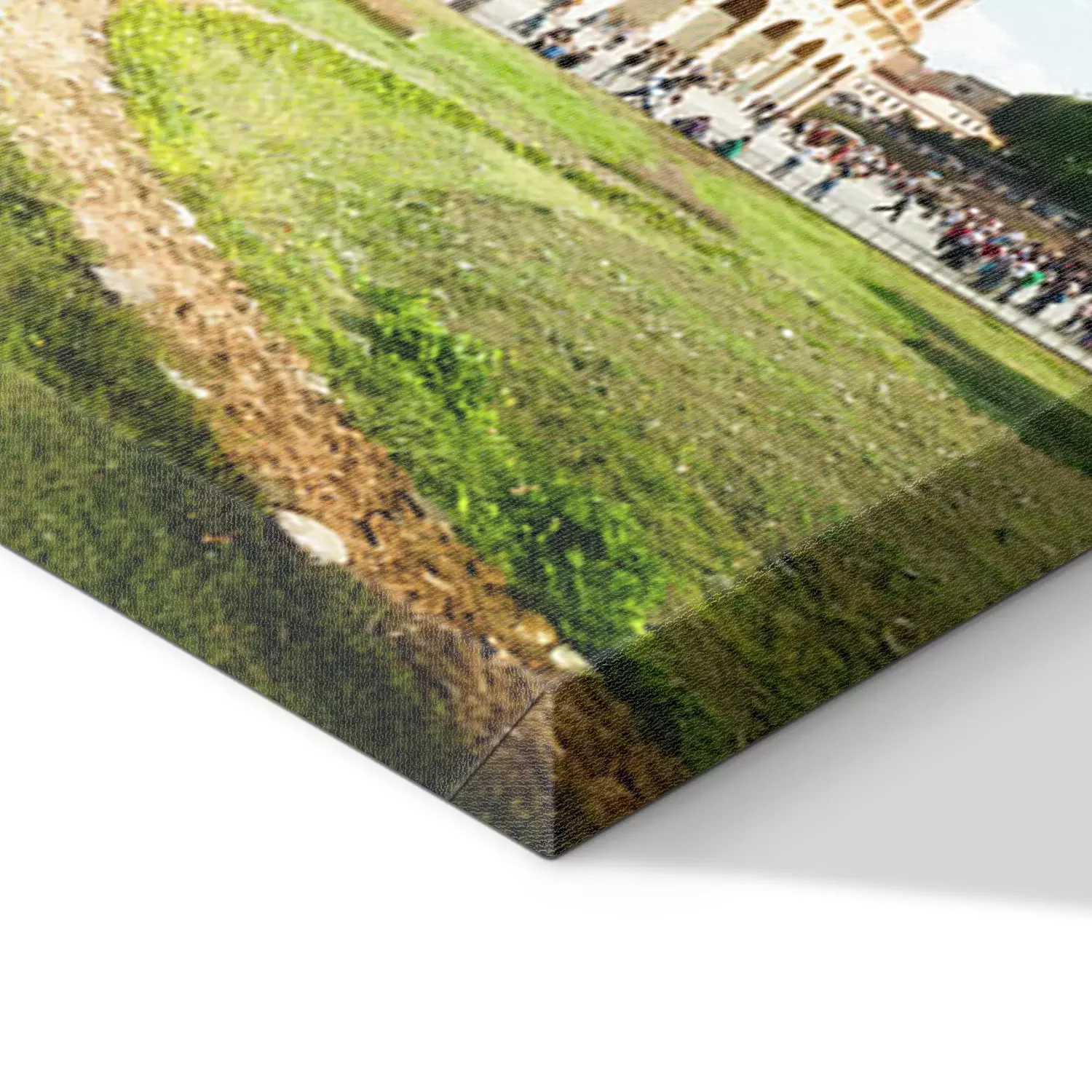 De print wordt aangebracht op hoogwaardig canvas dat op een schildersweefgetouw (spieraam) wordt gespannen. Omdat de print de zijranden bedekt, hoeft het ontwerp niet met een extra kader te worden omlijst. Wij raden ook composities aan die uit meerdere foto's bestaan en zo een coherente compositie vormen.
