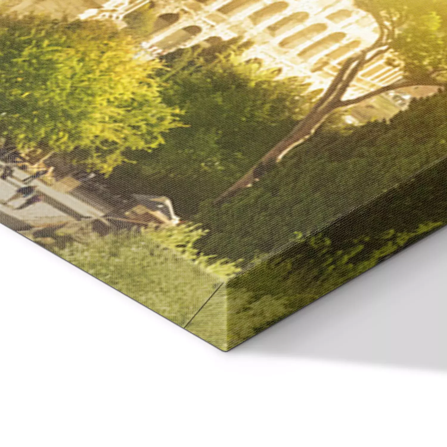 De print wordt aangebracht op hoogwaardig canvas dat op een schildersweefgetouw (spieraam) wordt gespannen. Omdat de print de zijranden bedekt, hoeft het ontwerp niet met een extra kader te worden omlijst. Wij raden ook composities aan die uit meerdere foto's bestaan en zo een coherente compositie vormen.